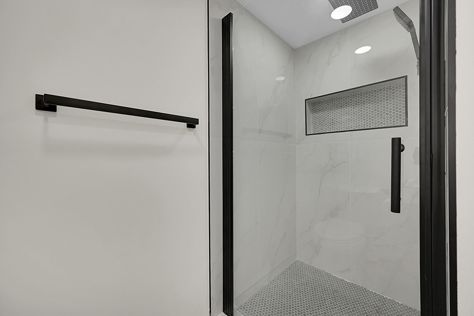 Drywall, Full Bathroom, Recessed Lighting, Tile Floor, Vent, Vanity