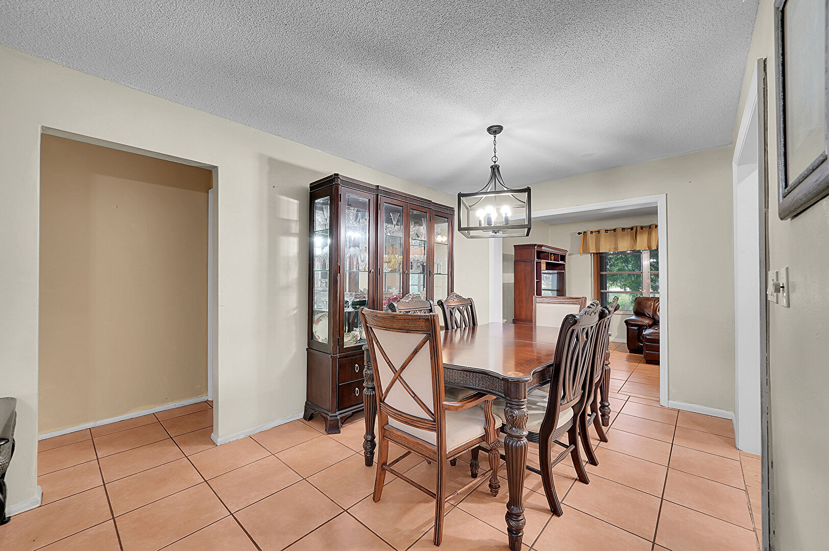 Baseboards Wall, Ceiling Fan, Drywall, Natural Light, Notable Chandelier, Recessed Lighting, Textured Ceiling, Tile Floor, Baseboards Wall, Tile Floor
