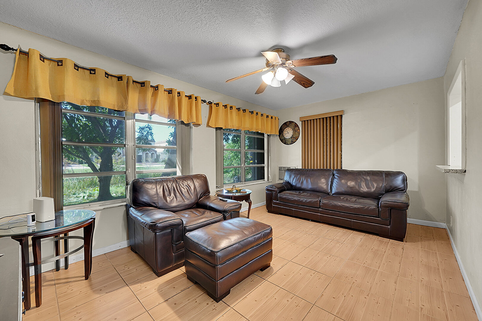 Ceiling Fan, Drywall, Natural Light, Textured Ceiling, Tile Floor, Vent, Drywall, Natural Light