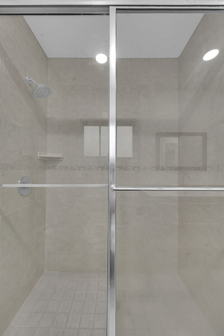 Drywall, Full Bathroom, Tile Floor, Tile Wall, Vanity, Full Bathroom, Natural Light