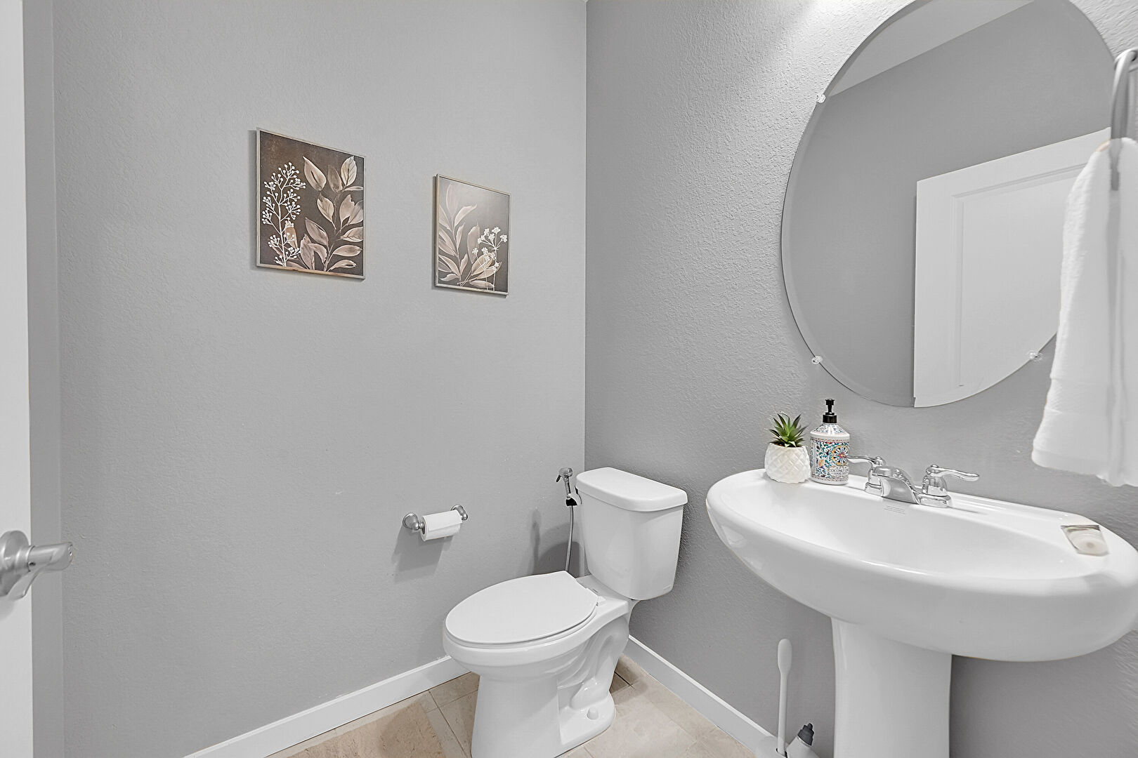 Baseboards Wall, Combined Bath Shower, Double Vanity, Drywall, Full Bathroom, Half Bathroom, Textured Wall, Tile Floor, Recessed Lighting, Tile Floor