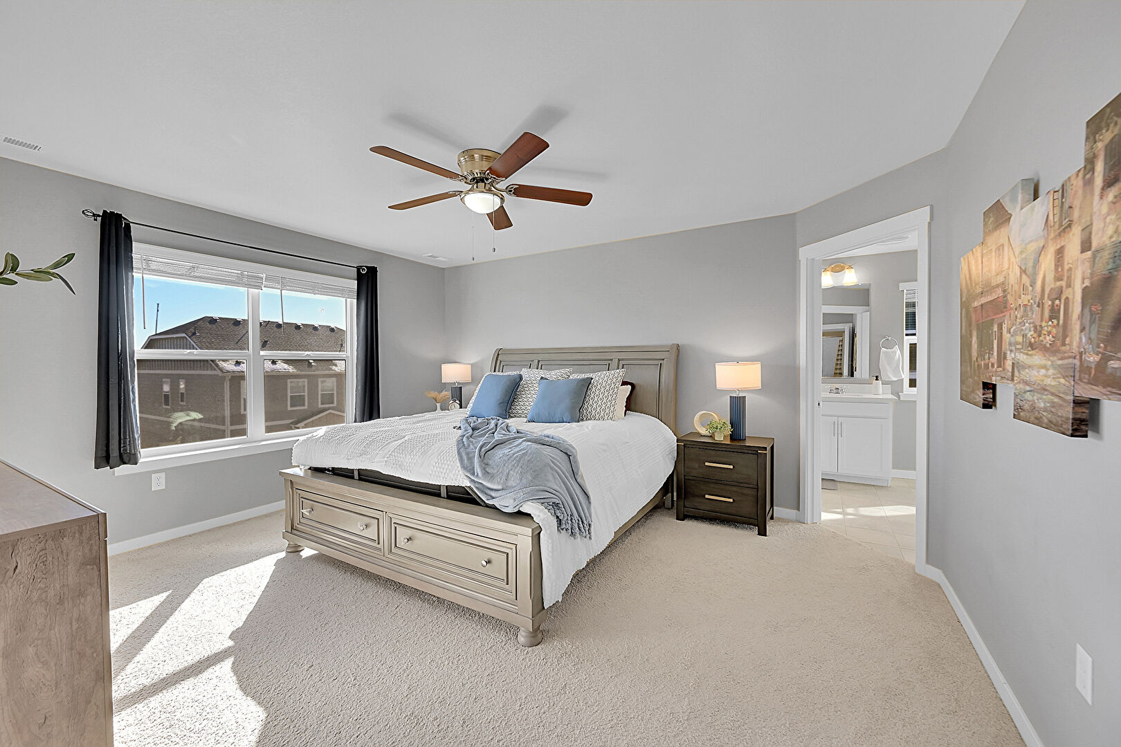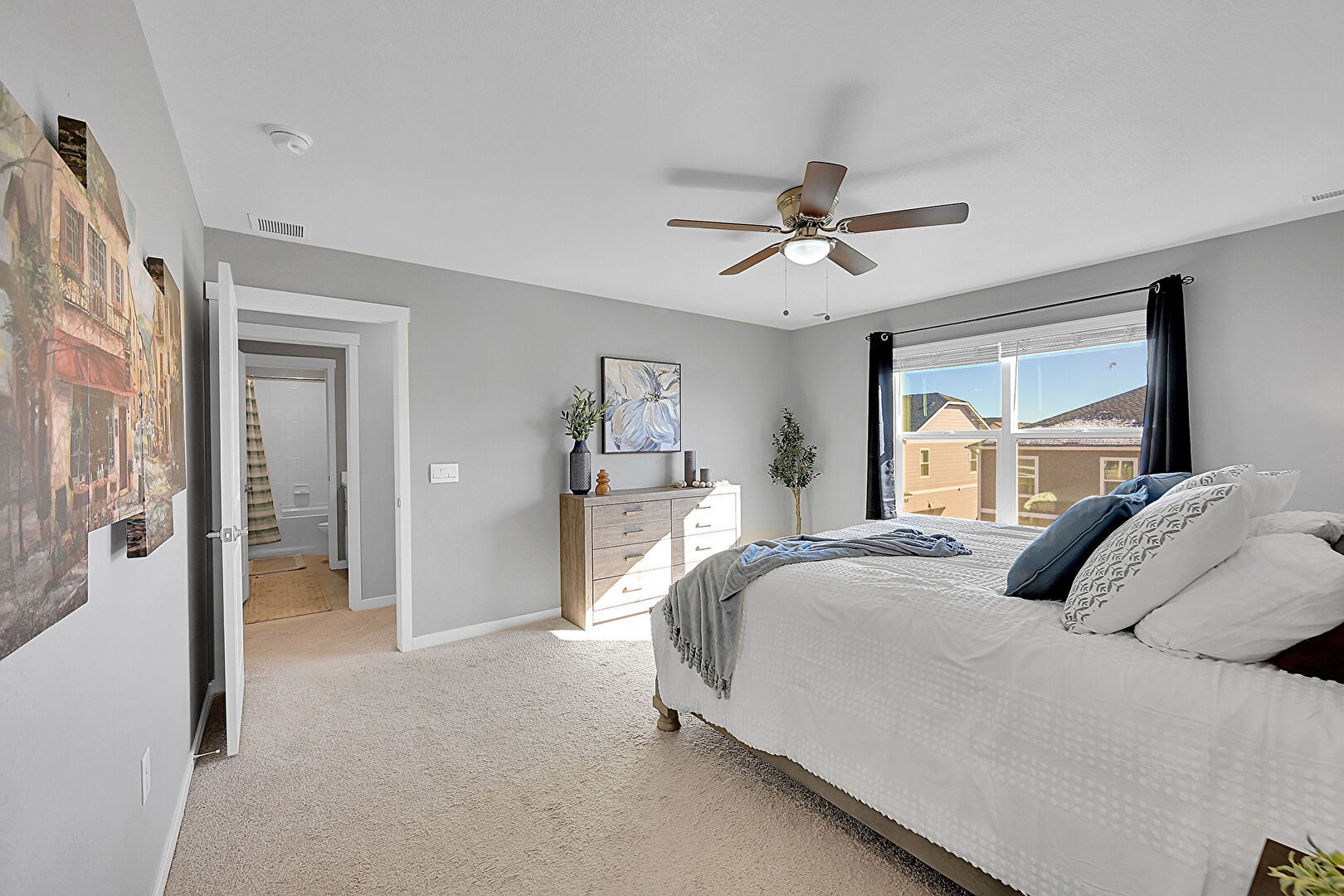 Baseboards Wall, Carpet, Ceiling Fan, Drywall, Ensuite Bathroom, Natural Light, Smoke Carbon Monoxide Detector, Vent, Carpet, Ceiling Fan