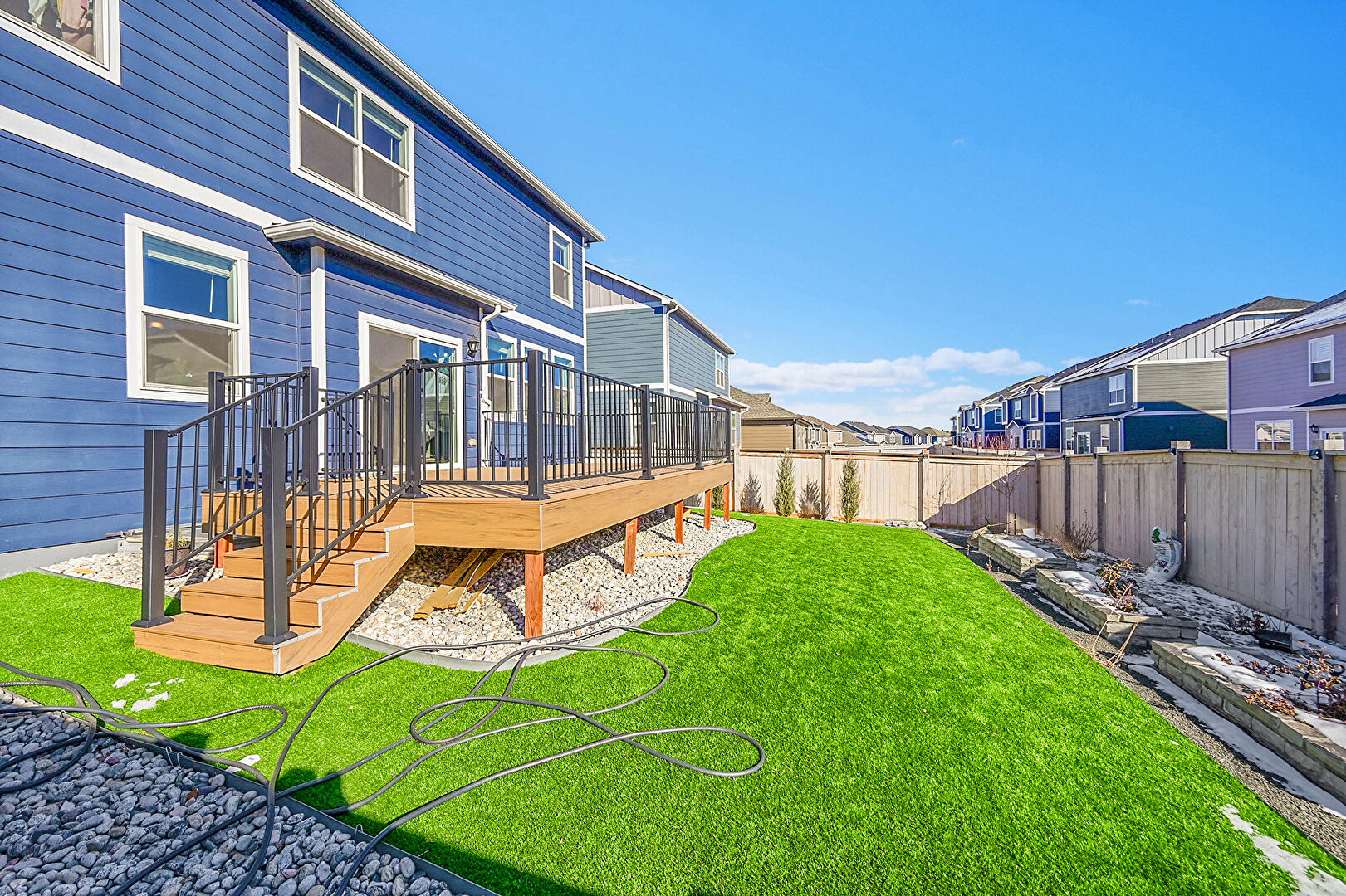 Deck, Fence, Lawn, Residential View, Stairs