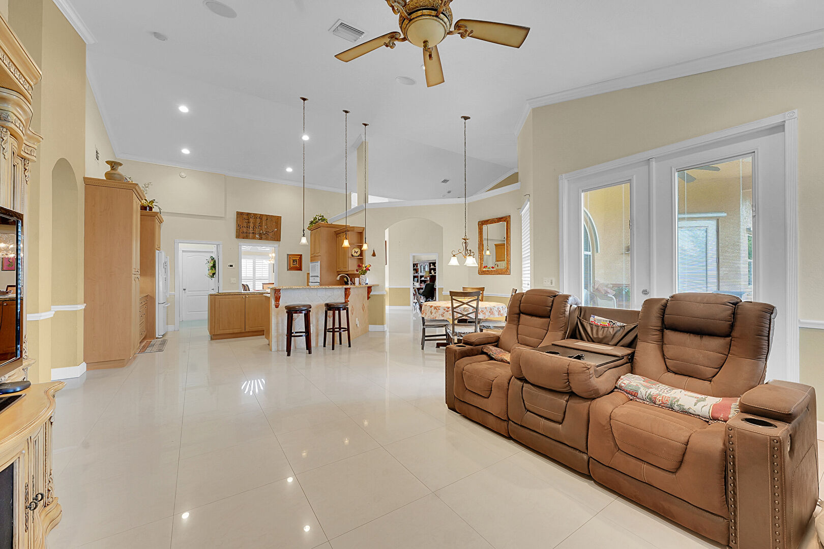 Arched Walkways, Baseboards Wall, Ceiling Fan, Crown Molding, Drywall, French Doors, High Ceiling, Natural Light, Notable Chandelier, Recessed Lighting, Tile Floor, Vaulted Ceiling, Vent, Baseboards Wall, Drywall, Vent
