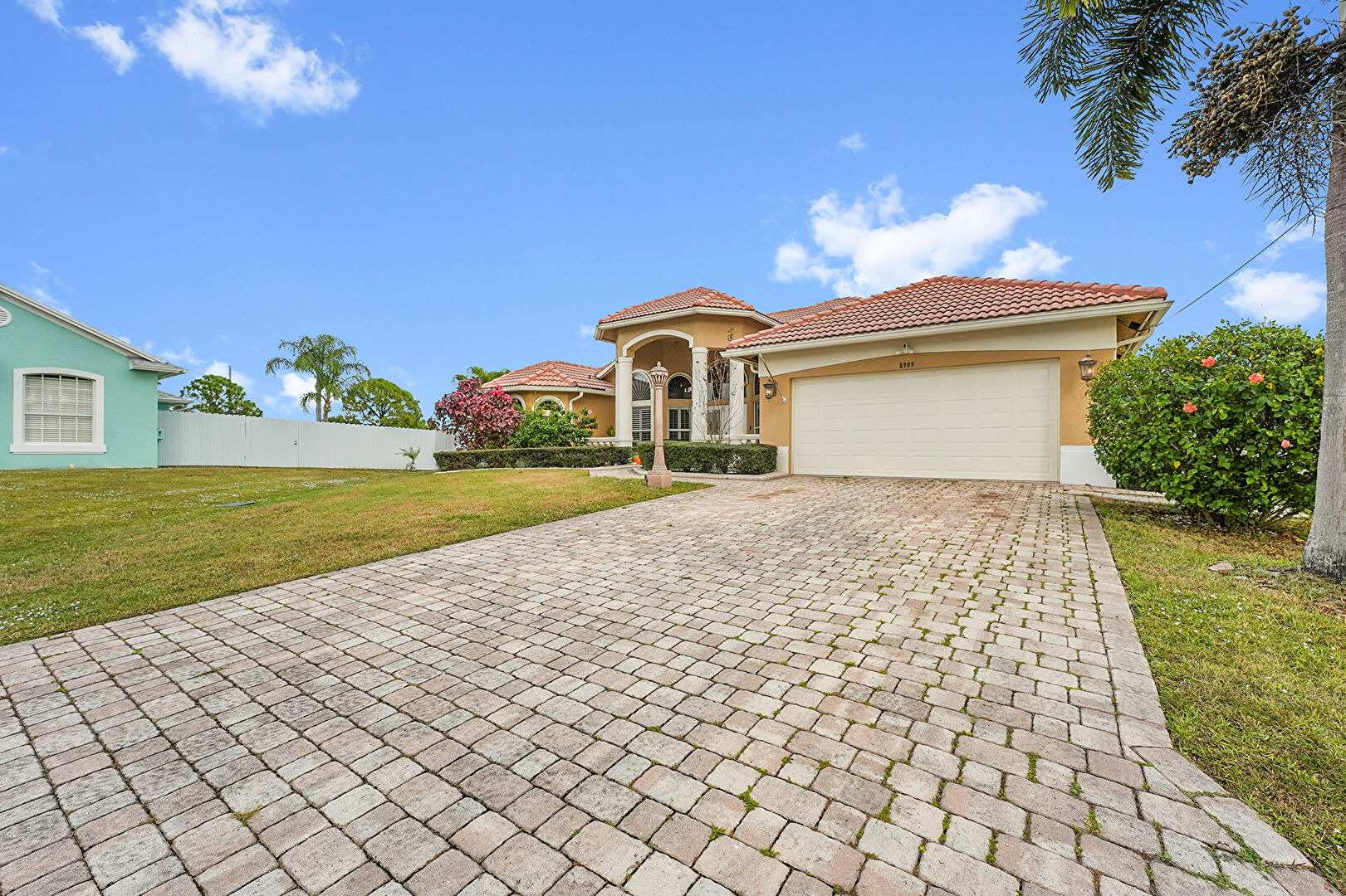 Downspout, Driveway, Fence, French Doors, Gutters, Lawn, Porch, Residential View, Stucco Siding, Tile Roof, Water Meter, Downspout, Driveway, Stucco Siding