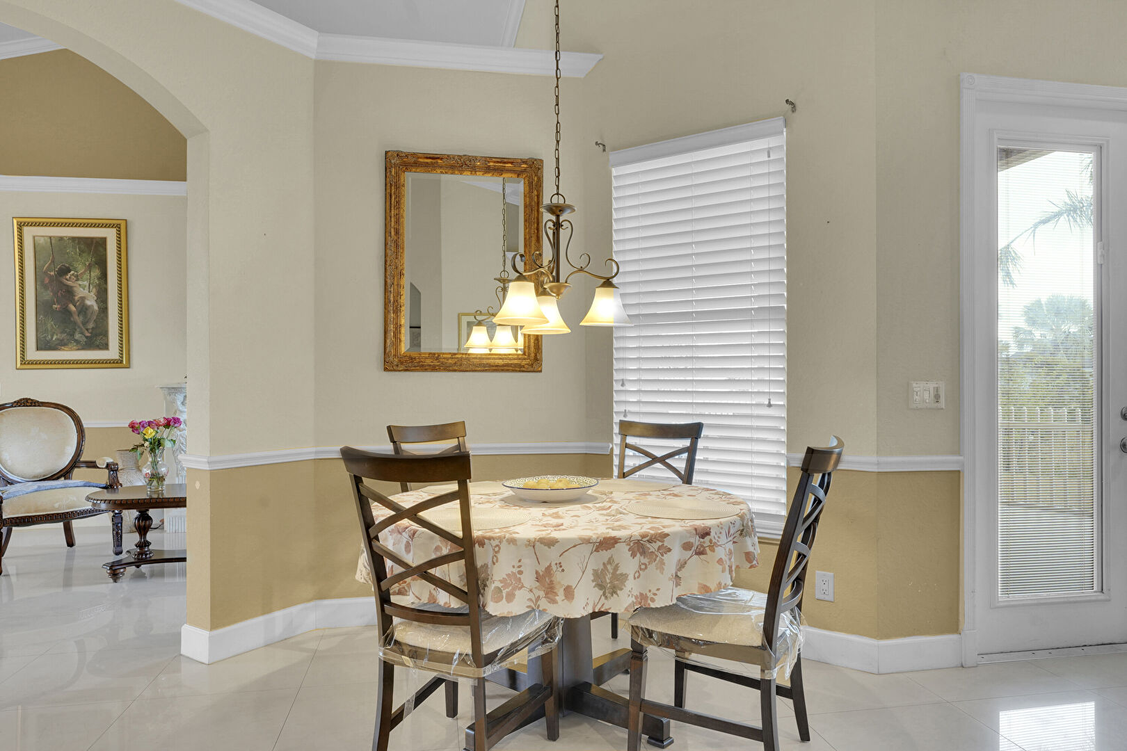 Arched Walkways, Baseboards Wall, Crown Molding, Drywall, Natural Light, Notable Chandelier, Tile Floor