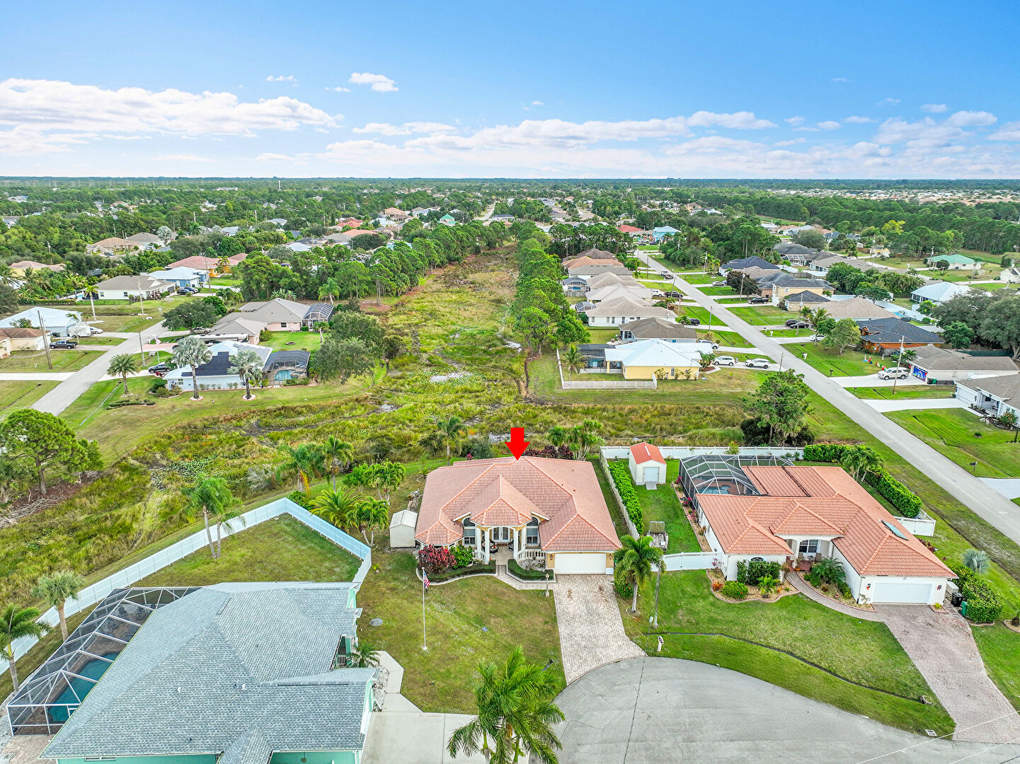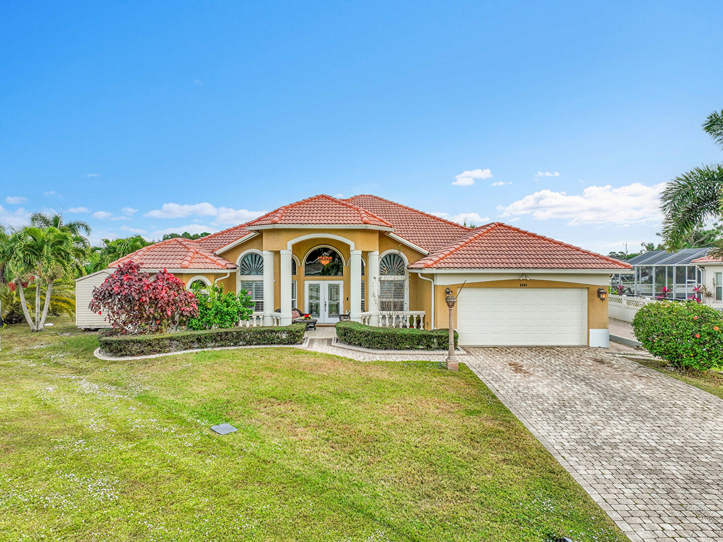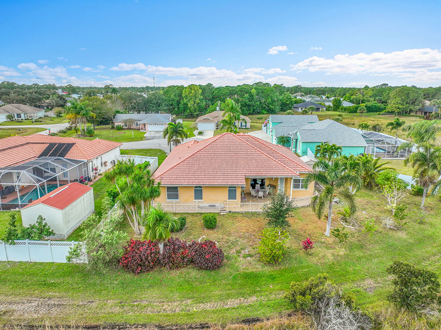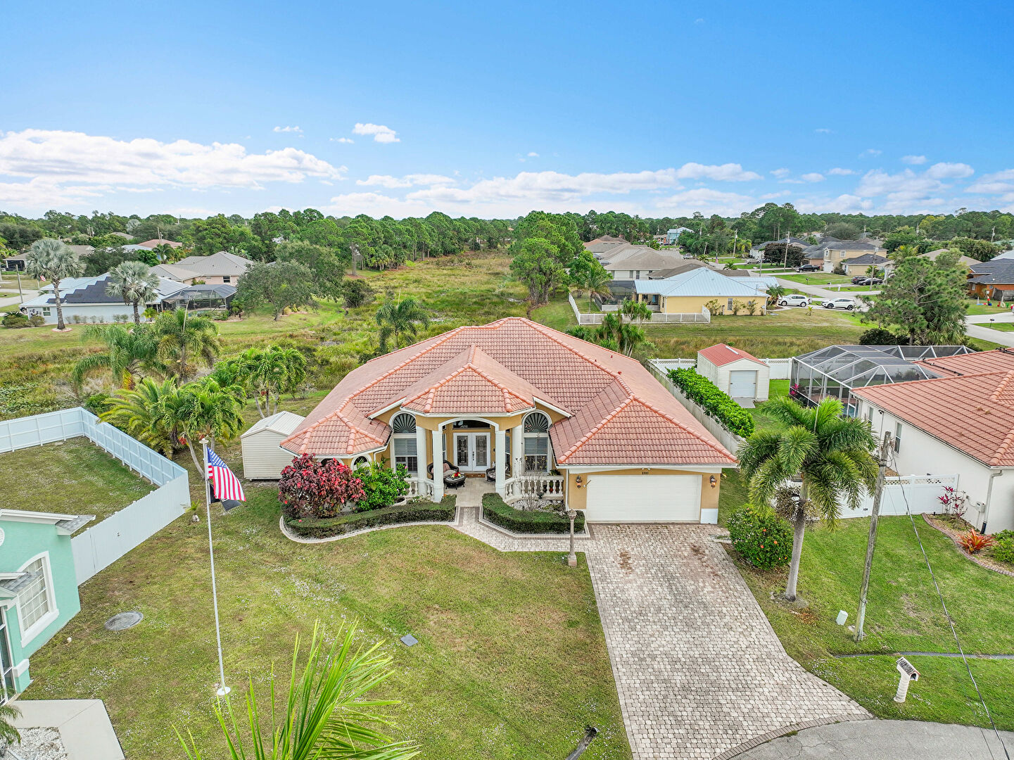 Downspout, Fence, Gutters, Lawn, Outdoor Structure, Patio, Shed, Stucco Siding, Tile Roof, Ceiling Fan, Stucco Siding