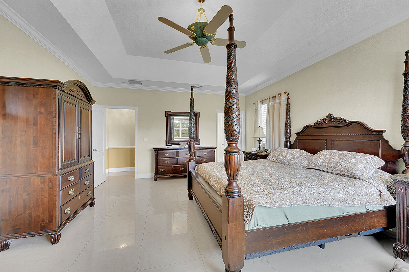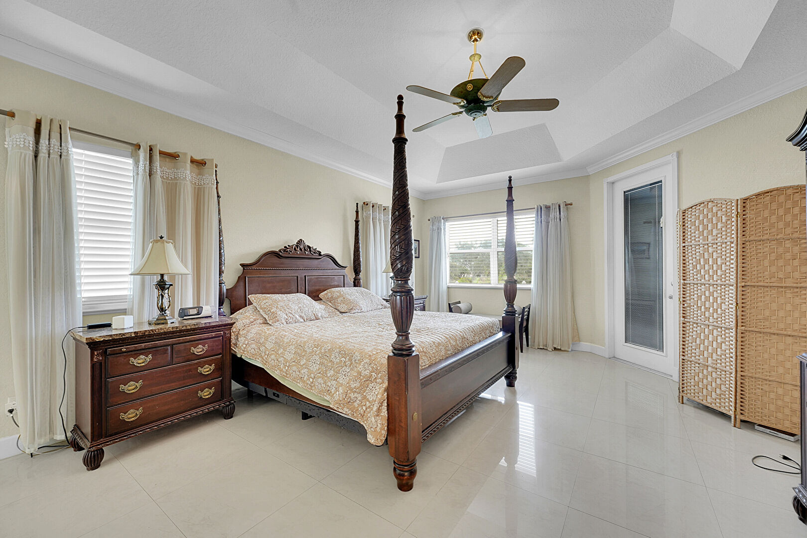 Baseboards Wall, Ceiling Fan, Crown Molding, Drywall, Natural Light, Tile Floor, Tray Ceiling, Drywall, Tile Floor, Vent