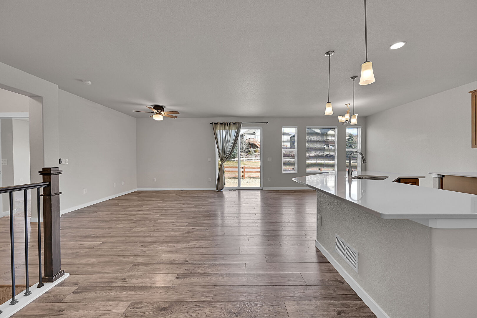 Baseboards Wall, Ceiling Fan, Drywall, L Shaped Kitchen, Natural Light, Notable Chandelier, Recessed Lighting, Smoke Carbon Monoxide Detector, Vent, Wood Finish Floor, Ceiling Fan, Drywall, Recessed Lighting, Vent