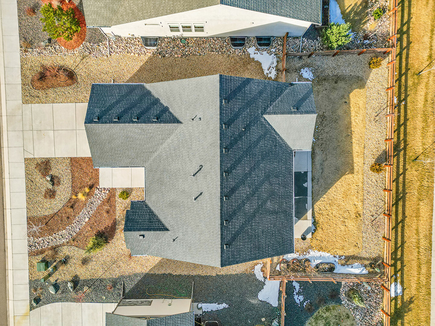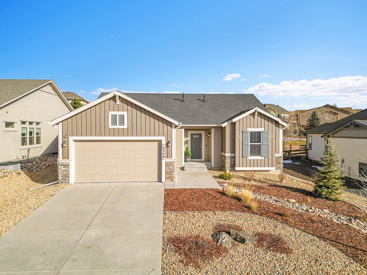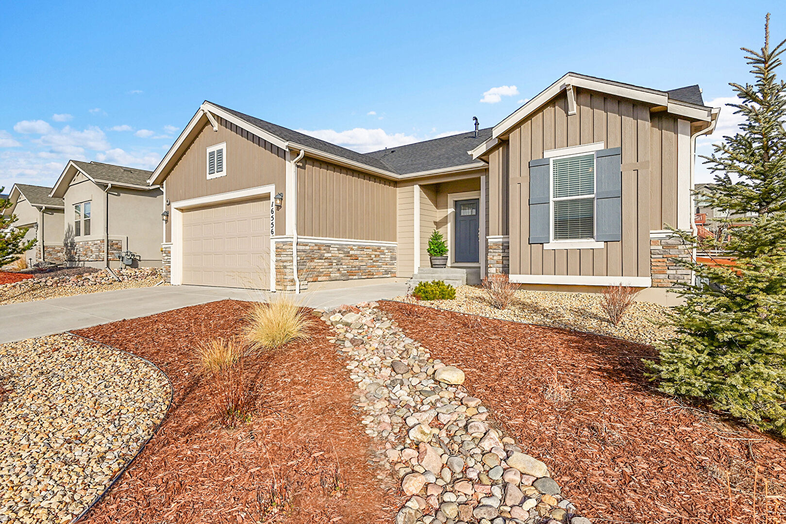 Board Batten Siding, Central Ac, Concrete Foundation, Downspout, Driveway, Entry Steps, Fence, Gutters, Horizontal Siding, Lawn, Mountain View, Patio, Porch, Residential View, Shingle Roof, Stone Siding, Vertical Siding, Downspout, Fence, Mountain View, Residential View, Shingle Roof