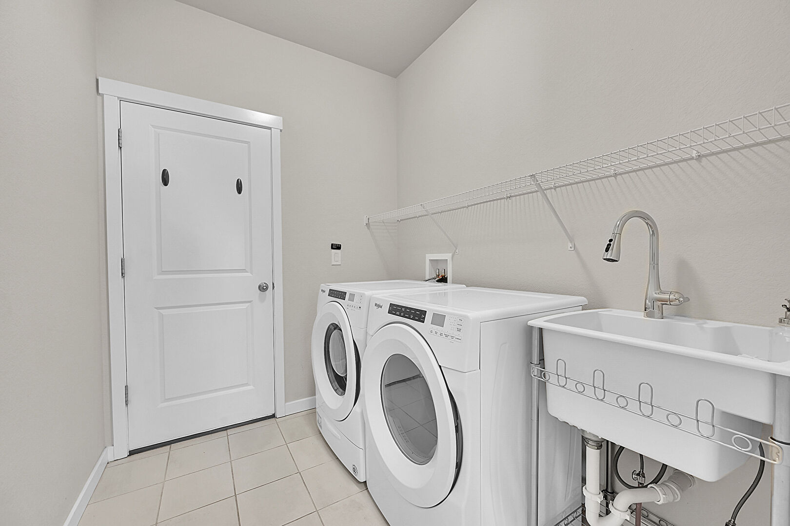 Baseboards Wall, Laundry, Tile Floor, Washer Hookup, Drywall