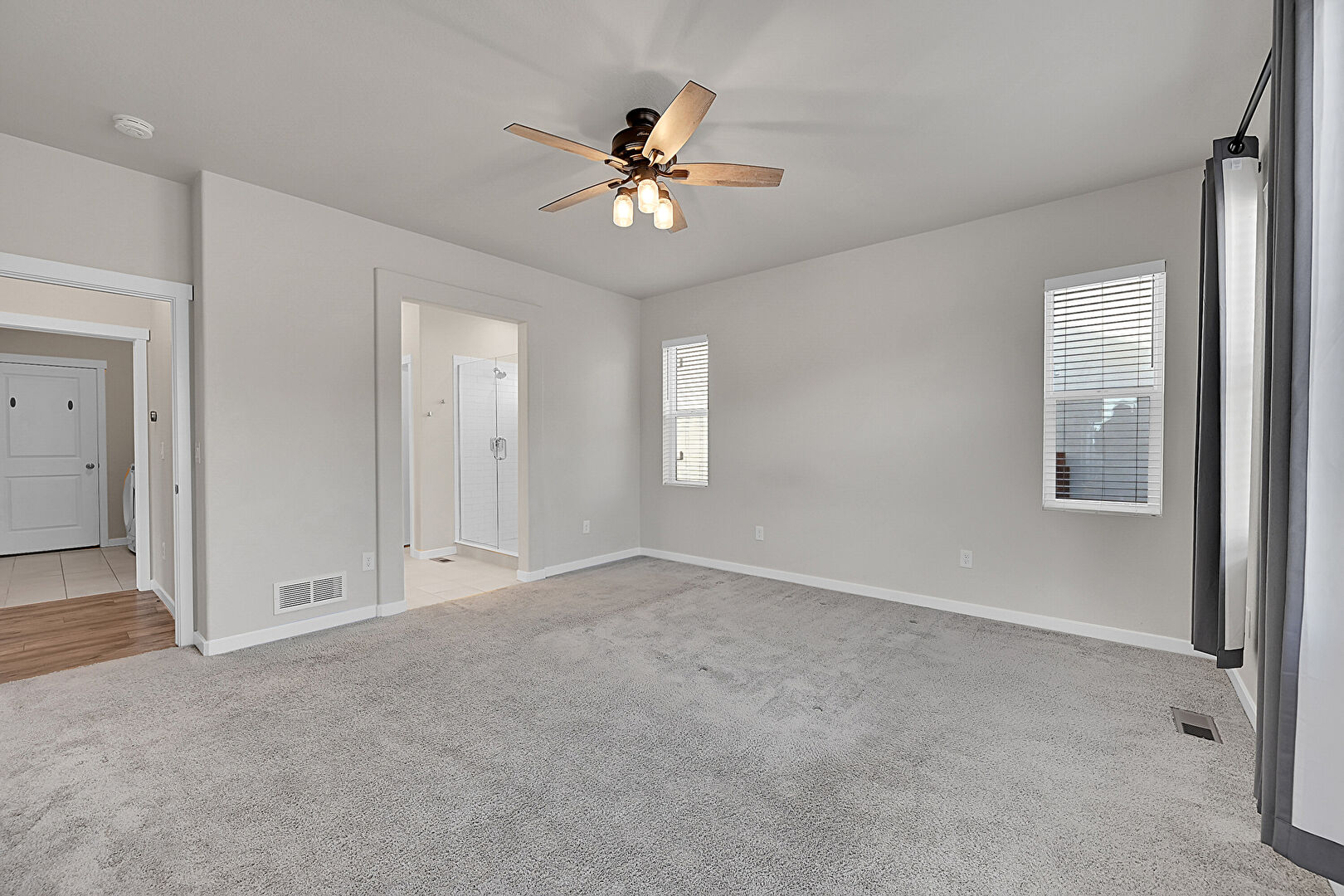Baseboards Wall, Carpet, Ceiling Fan, Drywall, Ensuite Bathroom, Natural Light, Smoke Carbon Monoxide Detector, Vent, Ceiling Fan, Natural Light