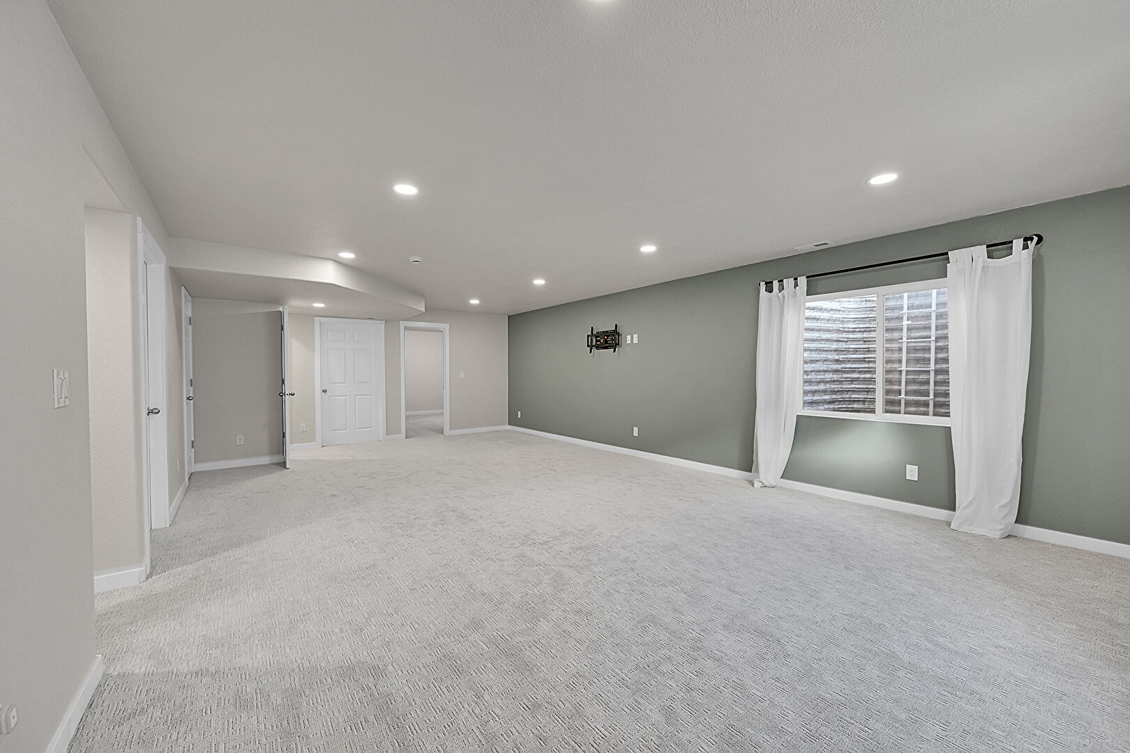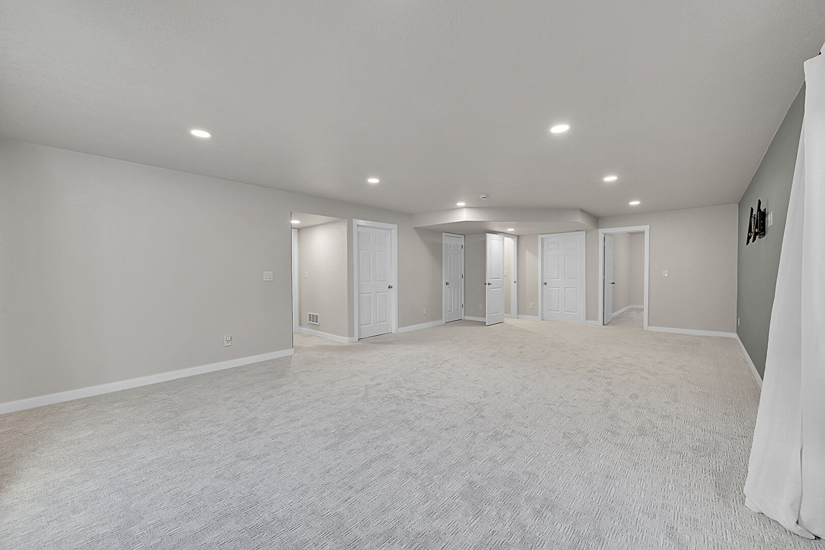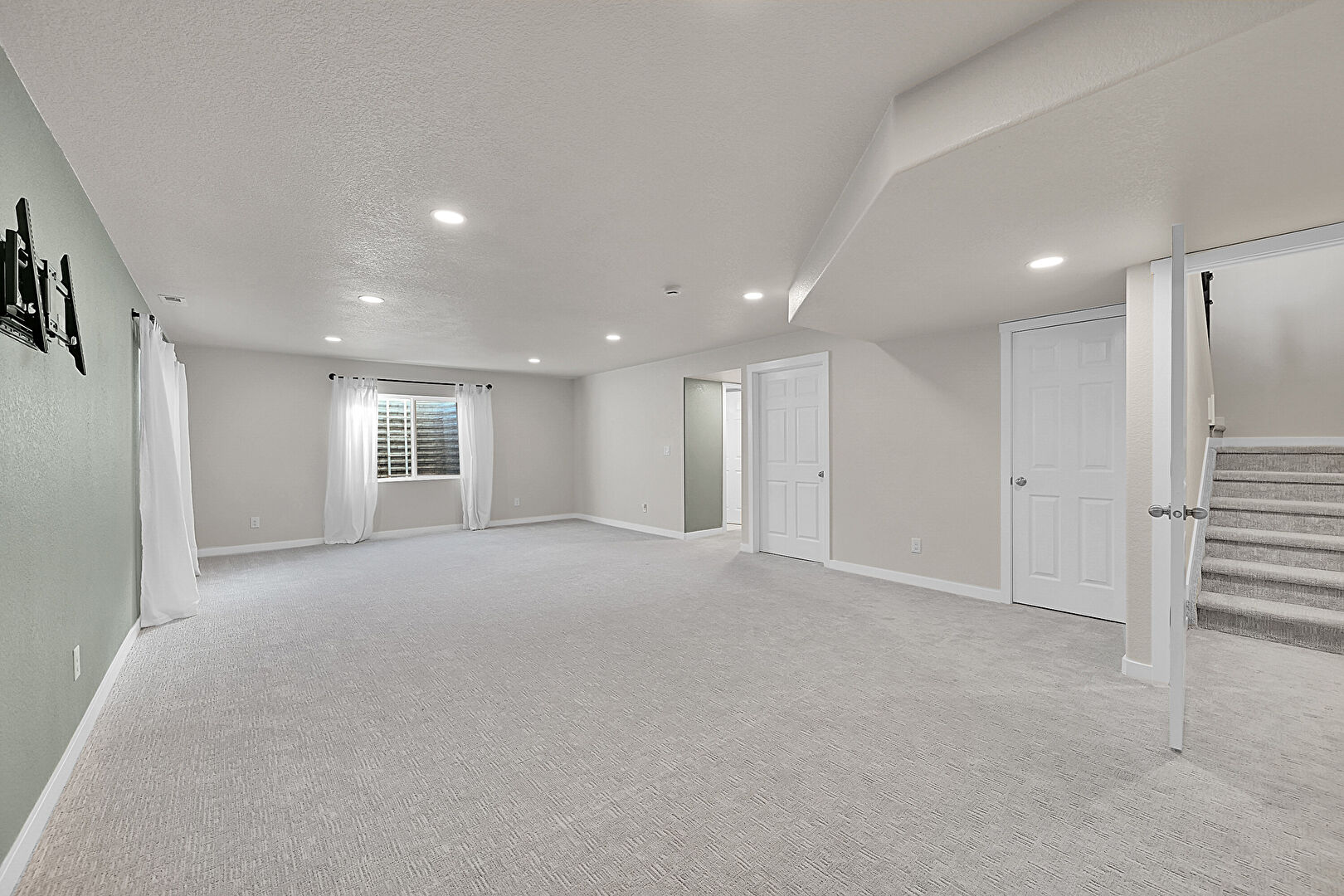 Baseboards Wall, Carpet, Drywall, Natural Light, Recessed Lighting, Stairs, Textured Ceiling, Basement, Natural Light, Vent