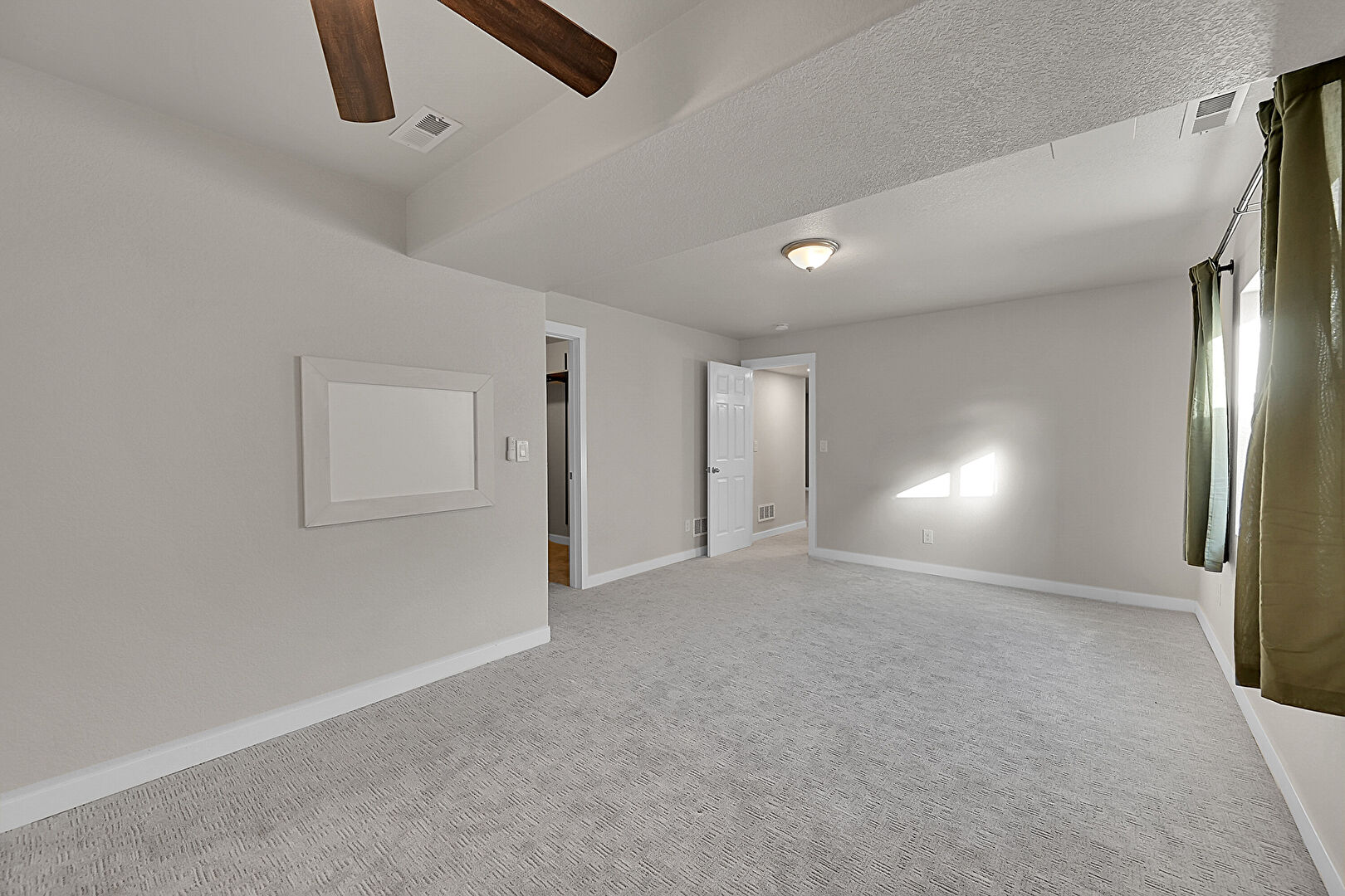 Baseboards Wall, Carpet, Ceiling Fan, Closet, Drywall, Natural Light, Textured Ceiling, Vent, Baseboards Wall, Ceiling Fan, Natural Light, Textured Ceiling