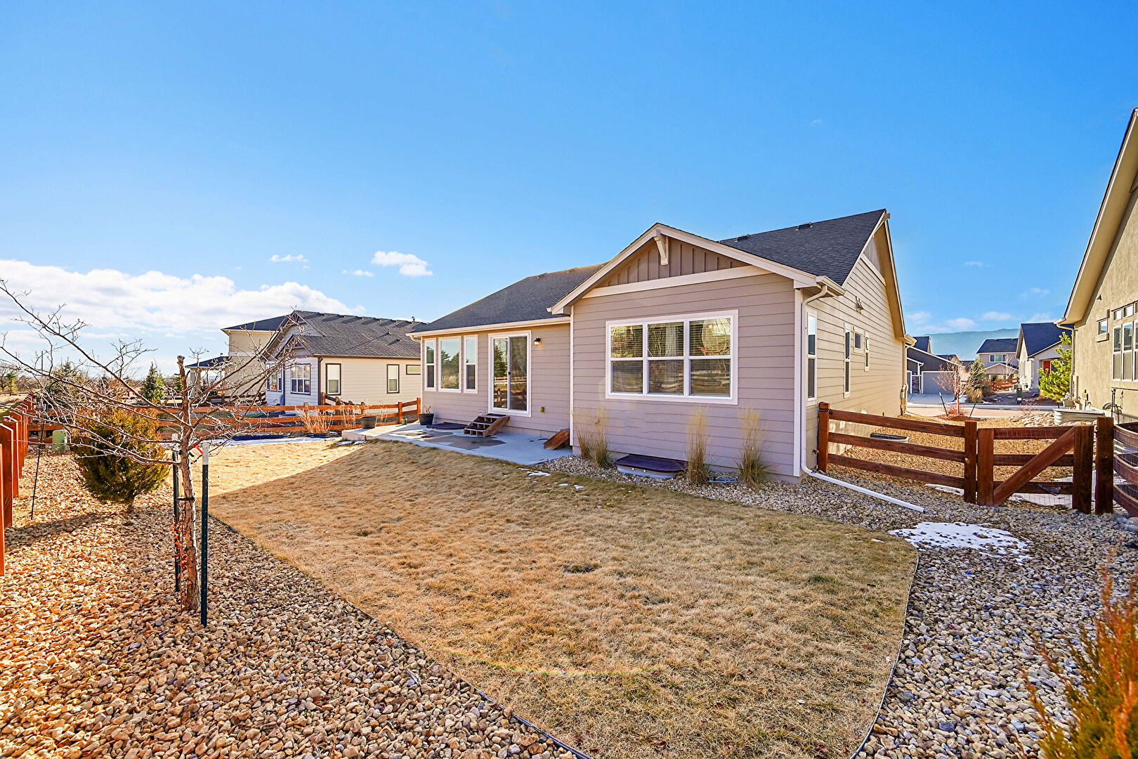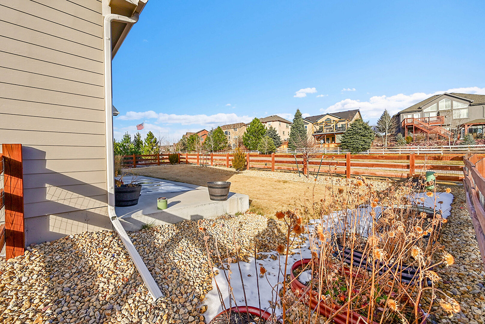 Board Batten Siding, Concrete Foundation, Downspout, Entry Steps, Fence, Garden, Gutters, Horizontal Siding, Lawn, Patio, Residential View, Shingle Roof, Vertical Siding, Board Batten Siding, Concrete Foundation, Horizontal Siding, Patio, Residential View