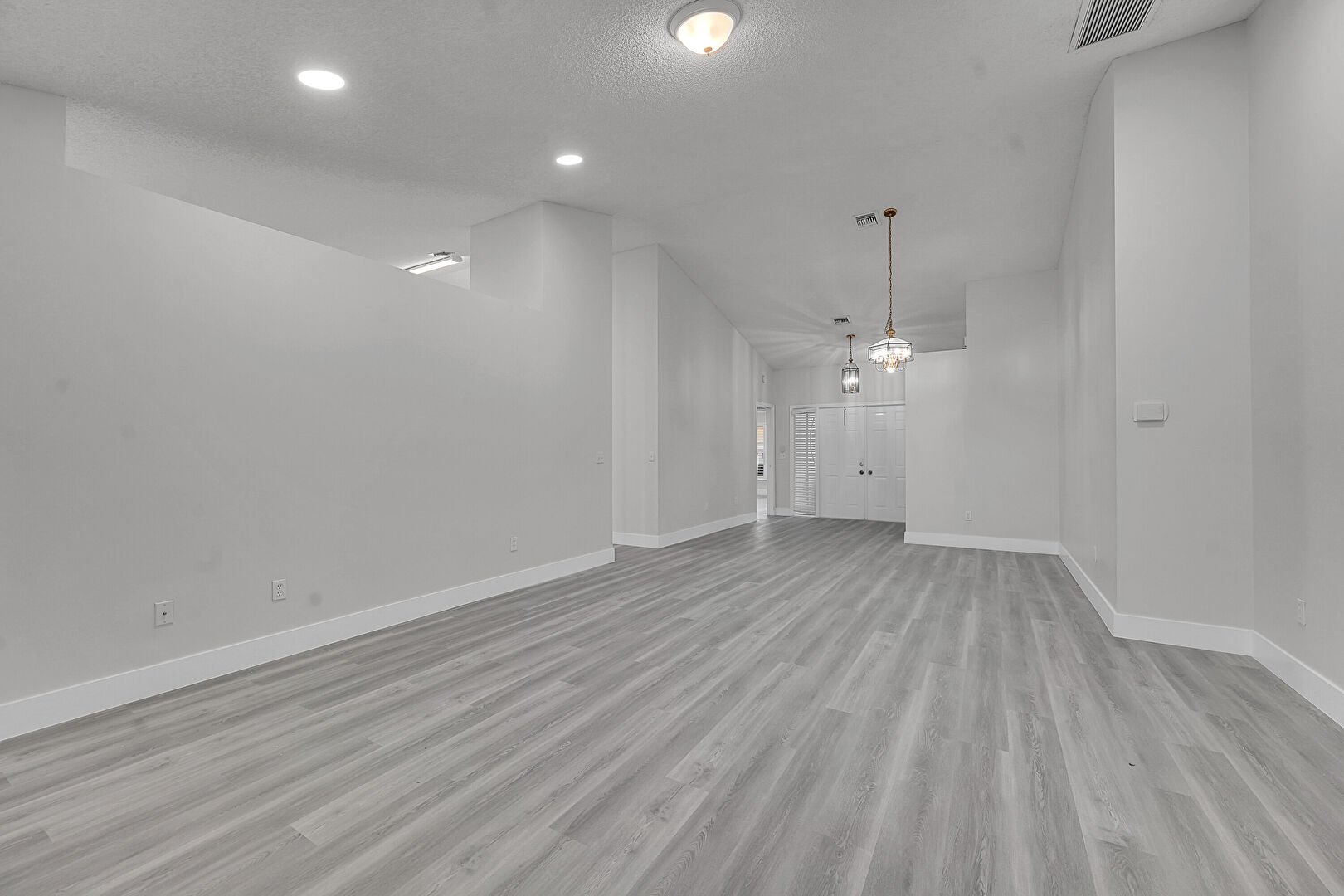Baseboards Wall, Drywall, Natural Light, Notable Chandelier, Recessed Lighting, Textured Ceiling, Vent, Wood Finish Floor, Vent, Wood Finish Floor