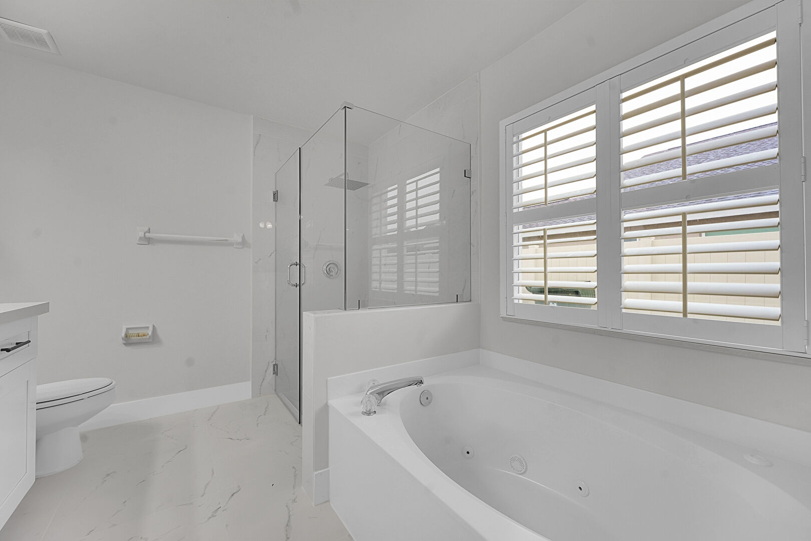 Baseboards Wall, Drywall, Full Bathroom, Marble Finish Floor, Natural Light, Vanity, Vent, Full Bathroom, Marble Finish Floor