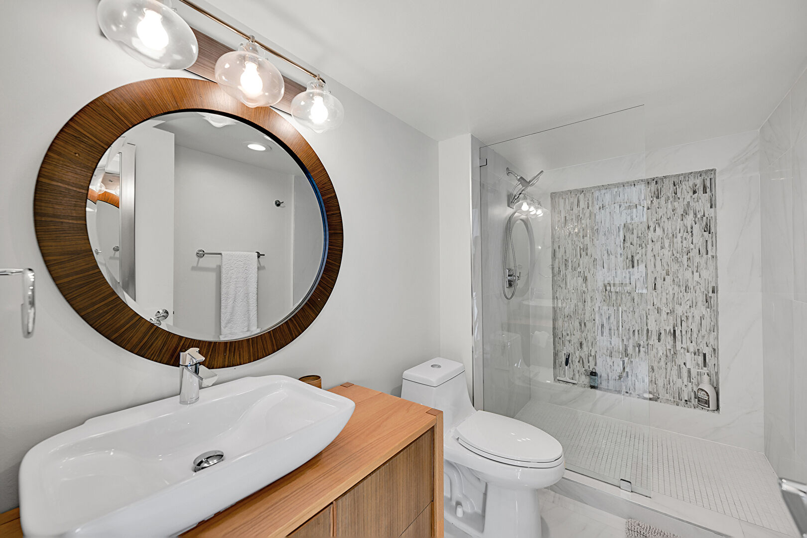 Baseboards Wall, Drywall, Ensuite Bathroom, Floor Ceiling Windows, Marble Finish Floor, Natural Light, Vent, Drywall, Natural Light, Vent