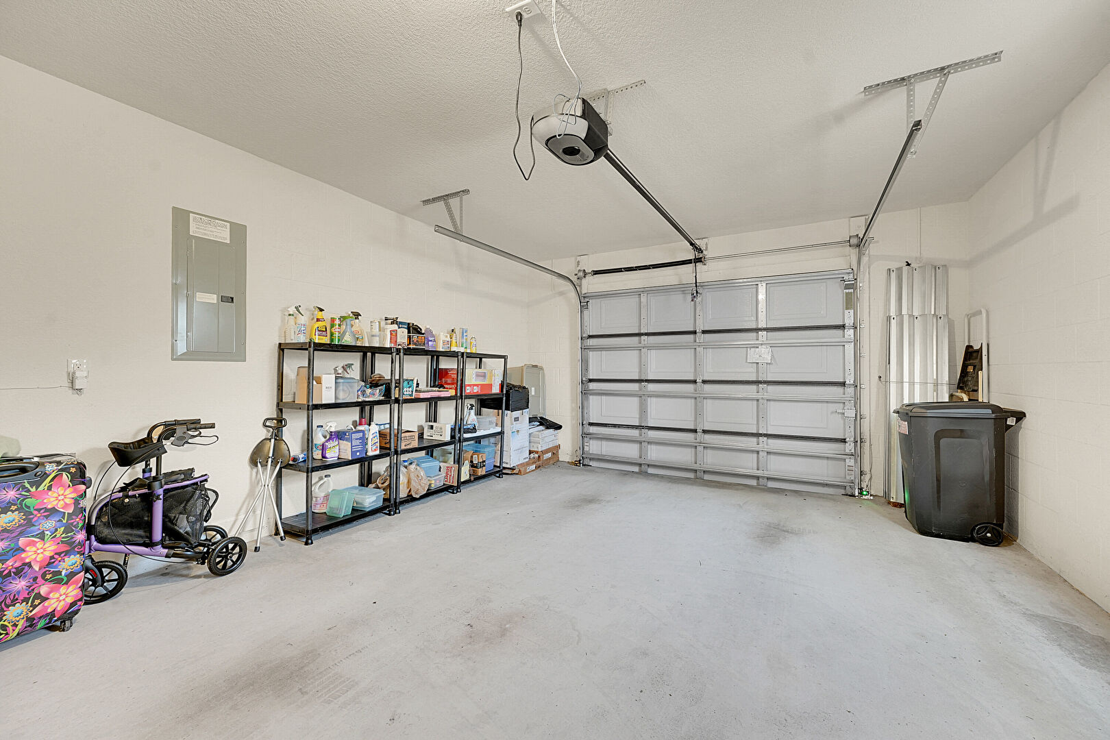 Concrete Block Wall, Drywall, Electric Panel, Garage Door Opener, Garage