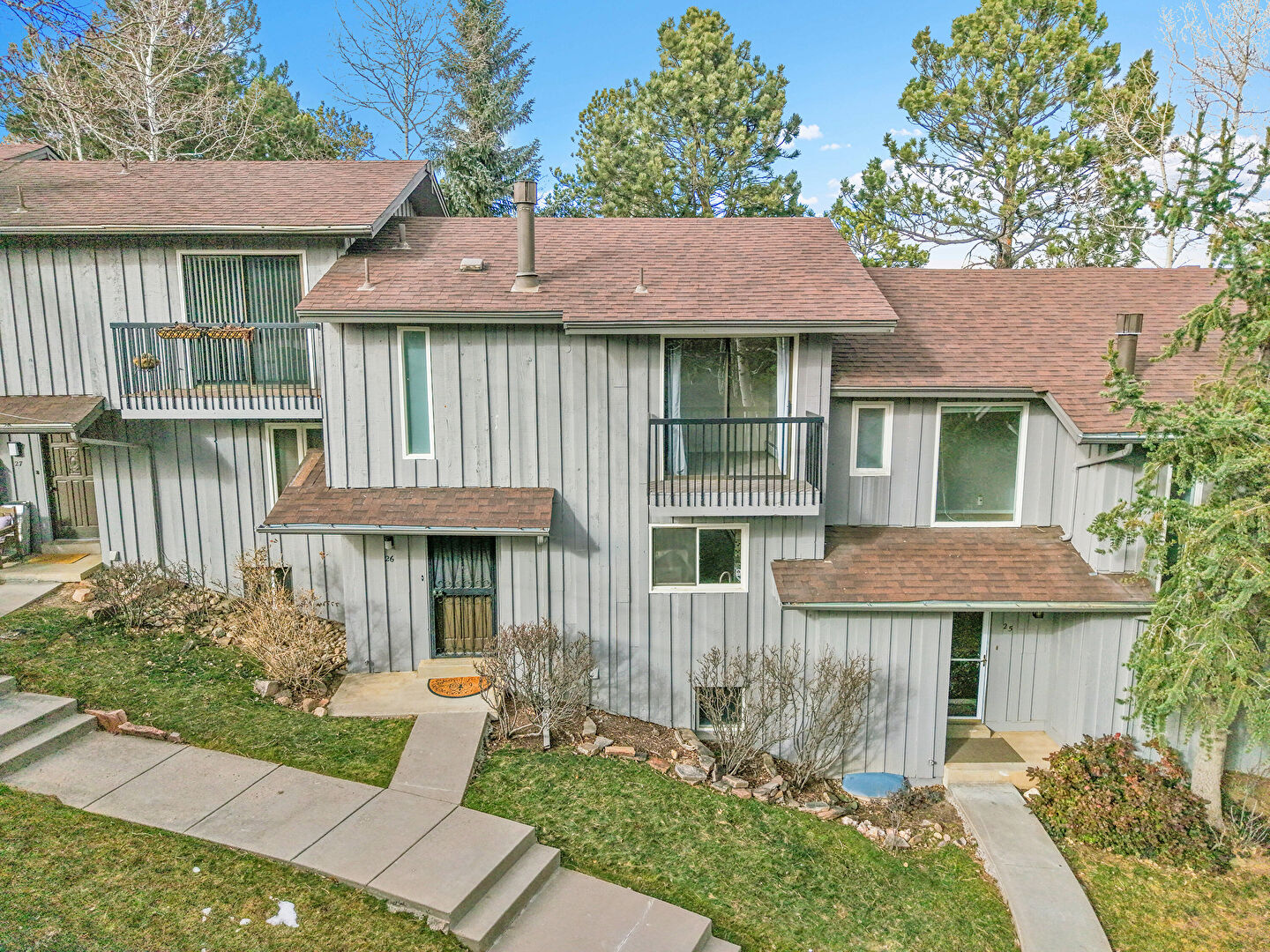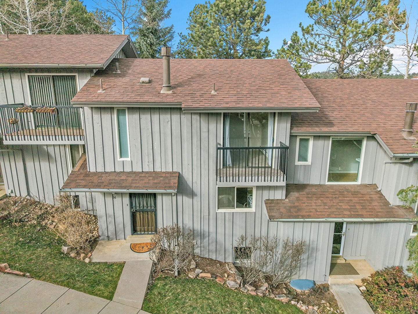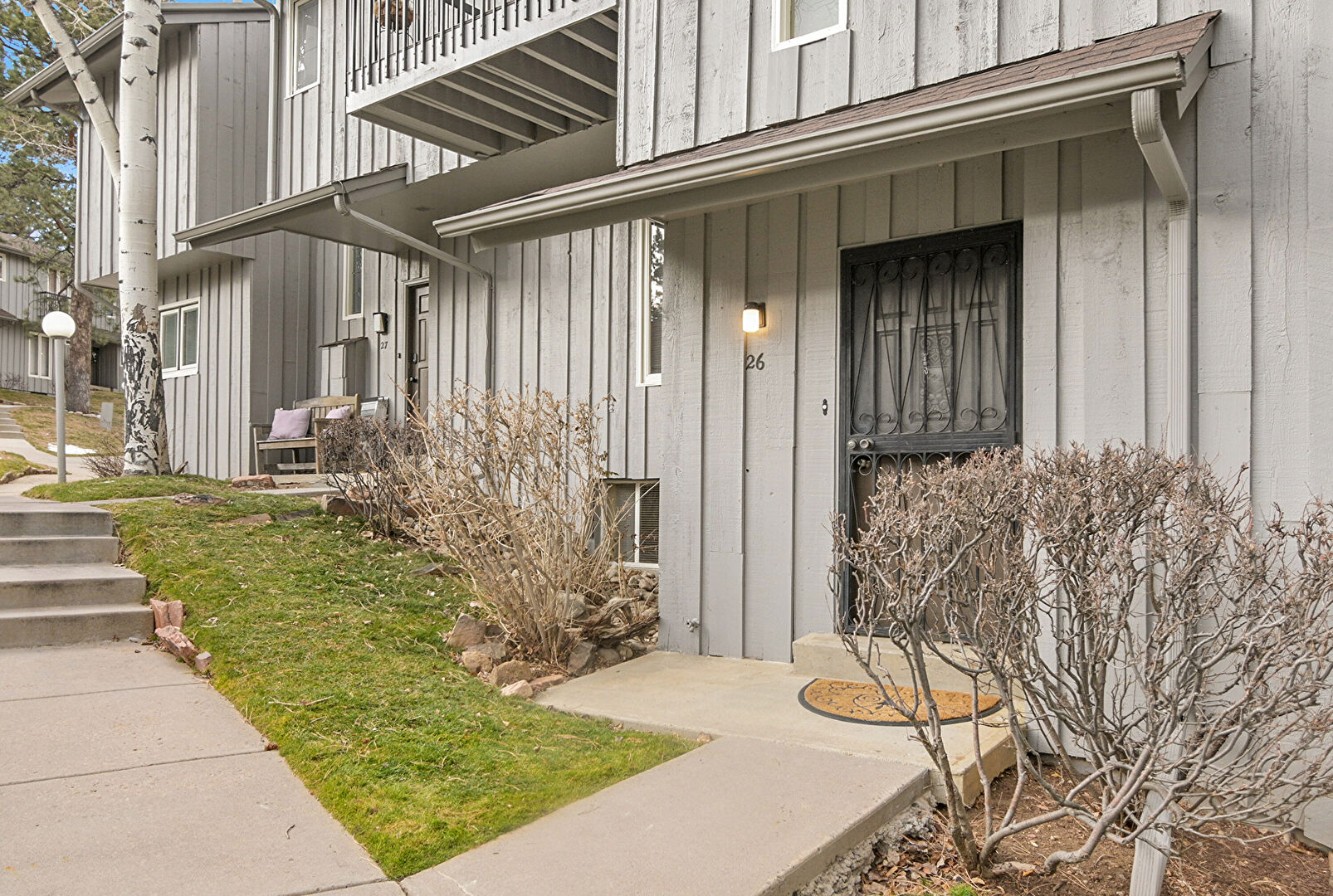 Apartment Complex View, Balcony, Board Batten Siding, Concrete Foundation, Downspout, Gutters, Lawn, Shingle Roof, Stoop, Vertical Siding, Board Batten Siding, Downspout