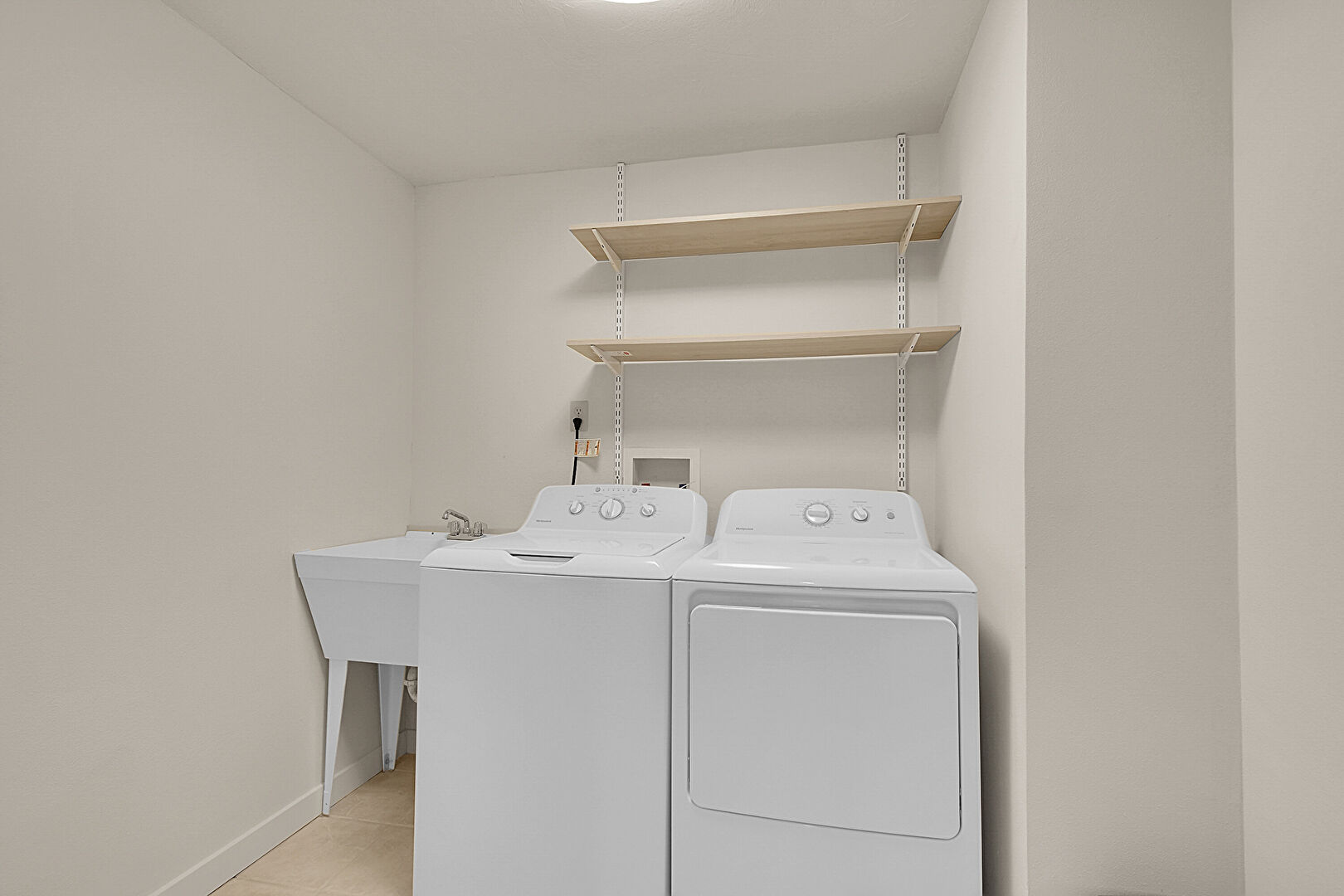 Baseboards Wall, Laundry, Tile Floor, Washer Hookup, Drywall