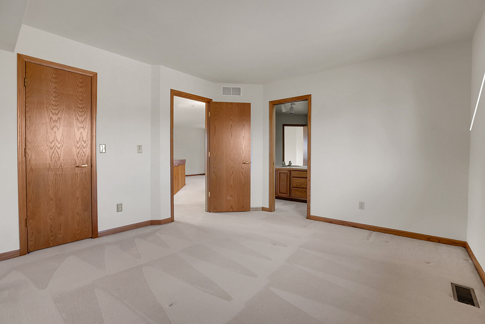 Baseboards Wall, Carpet, Closet, Drywall, Ensuite Bathroom, Natural Light, Notable Chandelier, Vent, Baseboards Wall, Carpet, Drywall, Natural Light