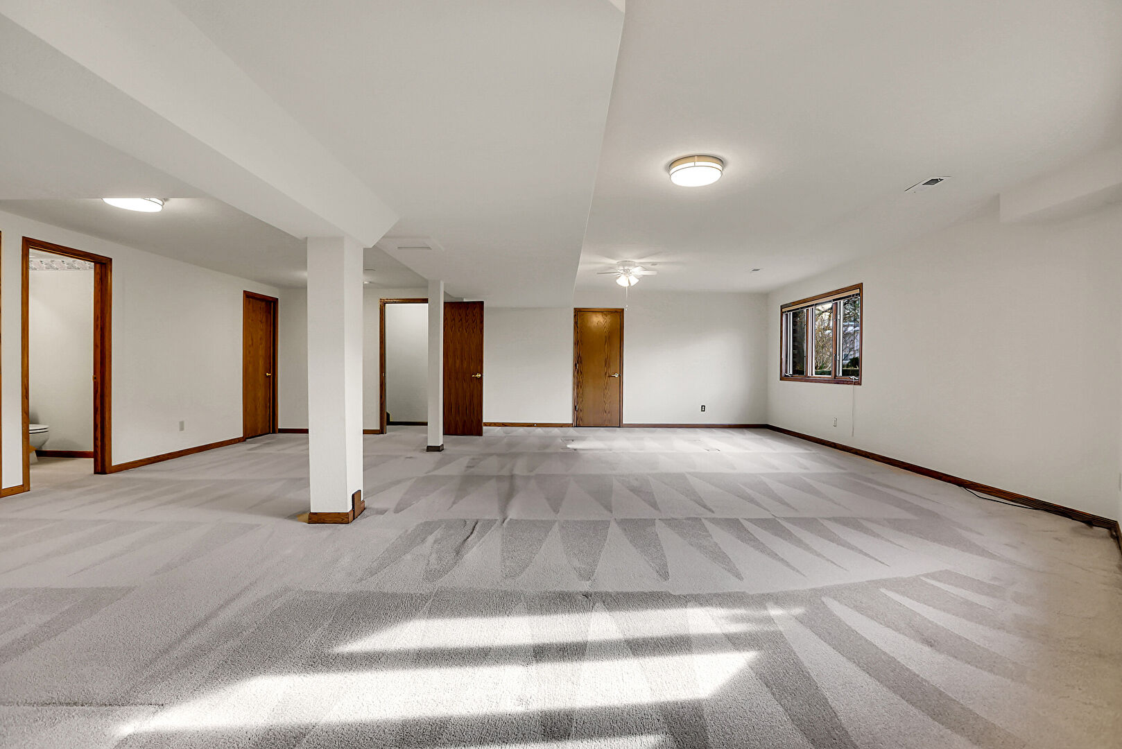 Baseboards Wall, Basement, Carpet, Ceiling Fan, Drywall, Natural Light, Vent, Baseboards Wall, Basement, Carpet, Natural Light