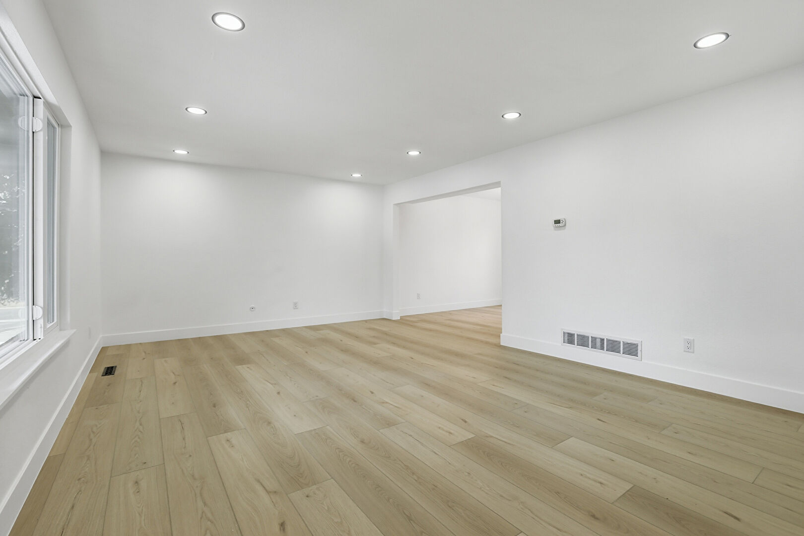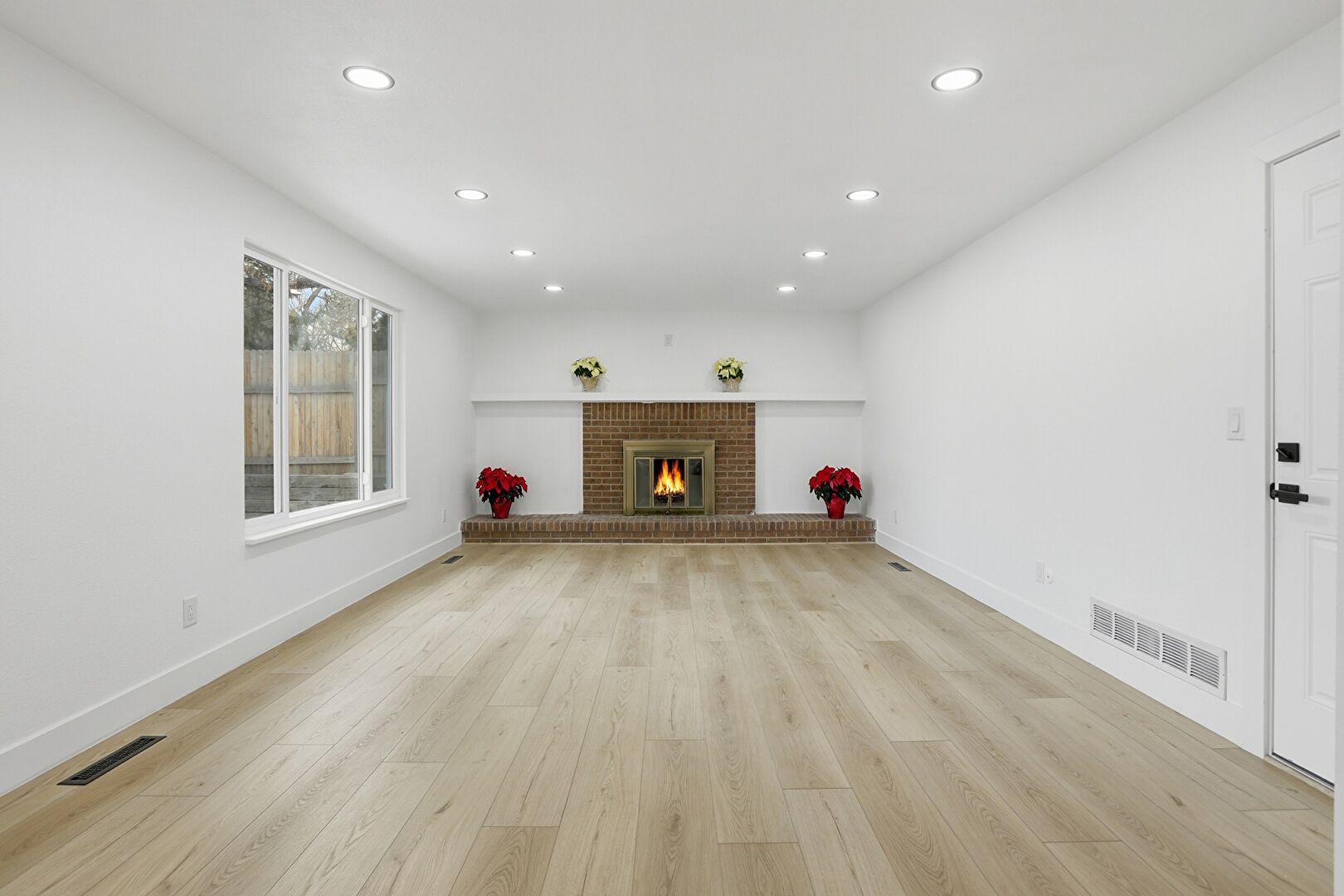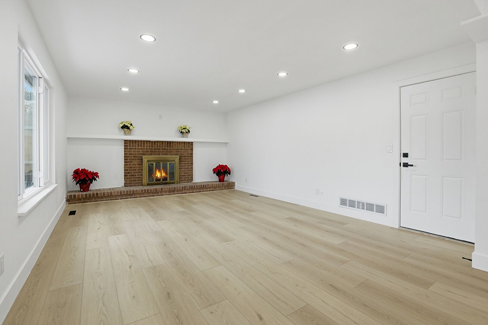 Baseboards Wall, Drywall, Fireplace, Natural Light, Recessed Lighting, Vent, Wood Finish Floor, Drywall, Fireplace, Wood Finish Floor