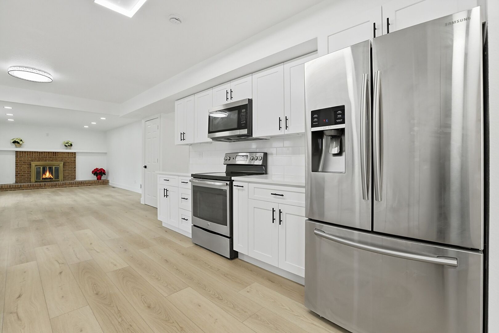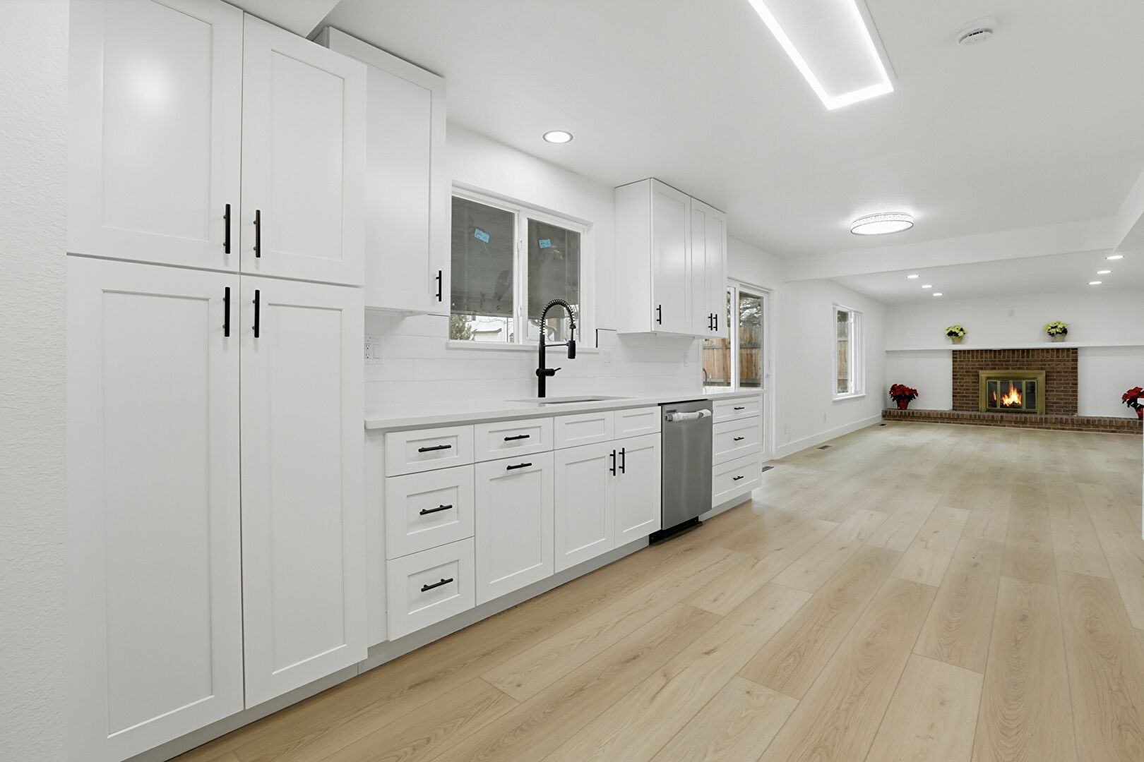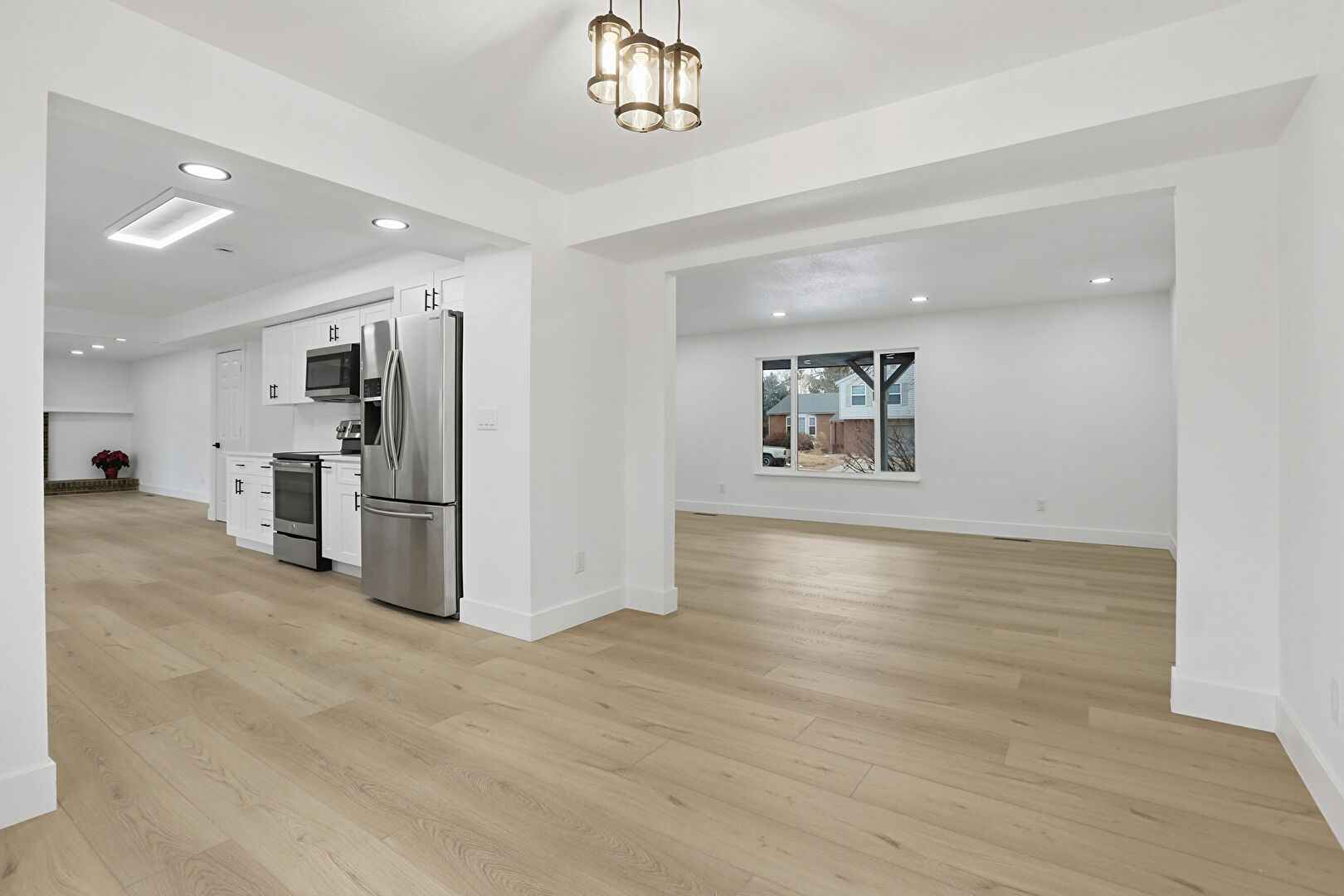 Baseboards Wall, Drywall, Fireplace, Natural Light, Recessed Lighting, Vent, Wood Finish Floor, Drywall, Fireplace, Wood Finish Floor