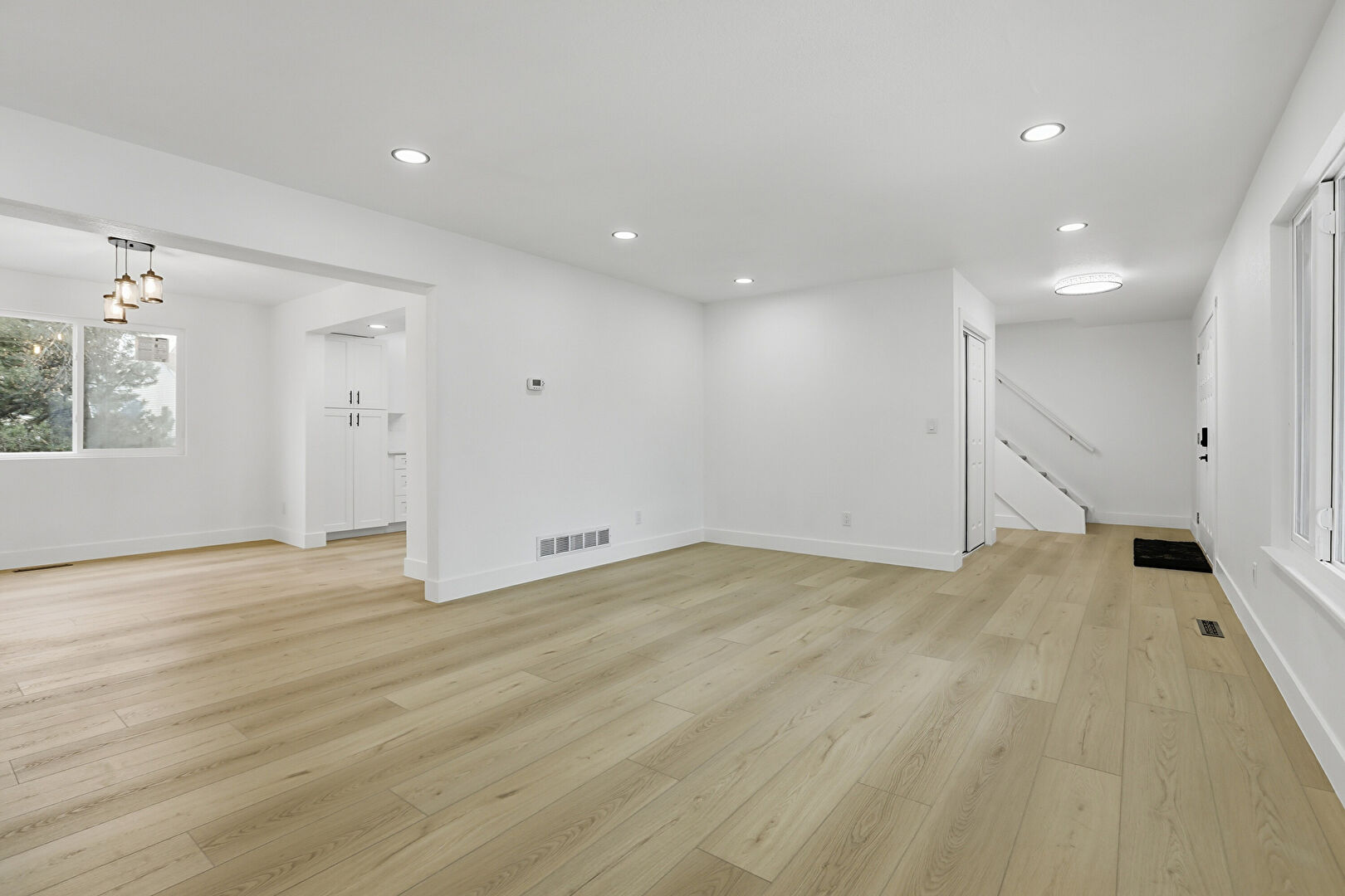 Baseboards Wall, Drywall, Natural Light, Notable Chandelier, Recessed Lighting, Stairs, Vent, Wood Finish Floor, Natural Light, Recessed Lighting, Vent