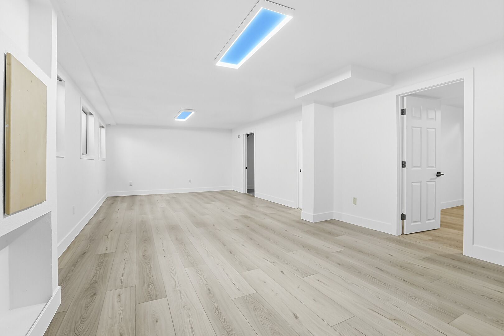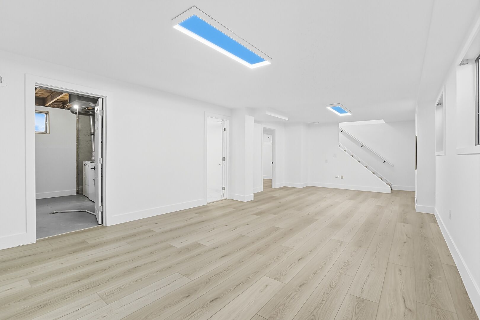 Baseboards Wall, Basement, Drywall, Natural Light, Wood Finish Floor, Basement, Stairs, Wood Finish Floor