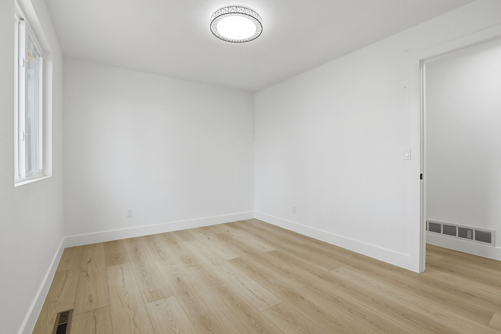 Baseboards Wall, Drywall, Recessed Lighting, Vent, Wood Finish Floor