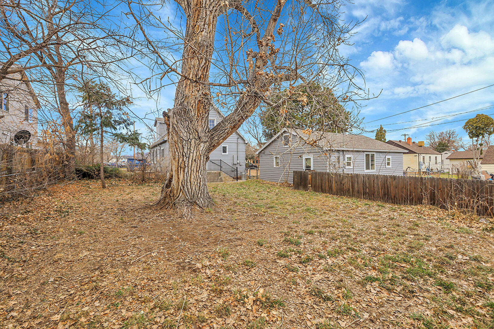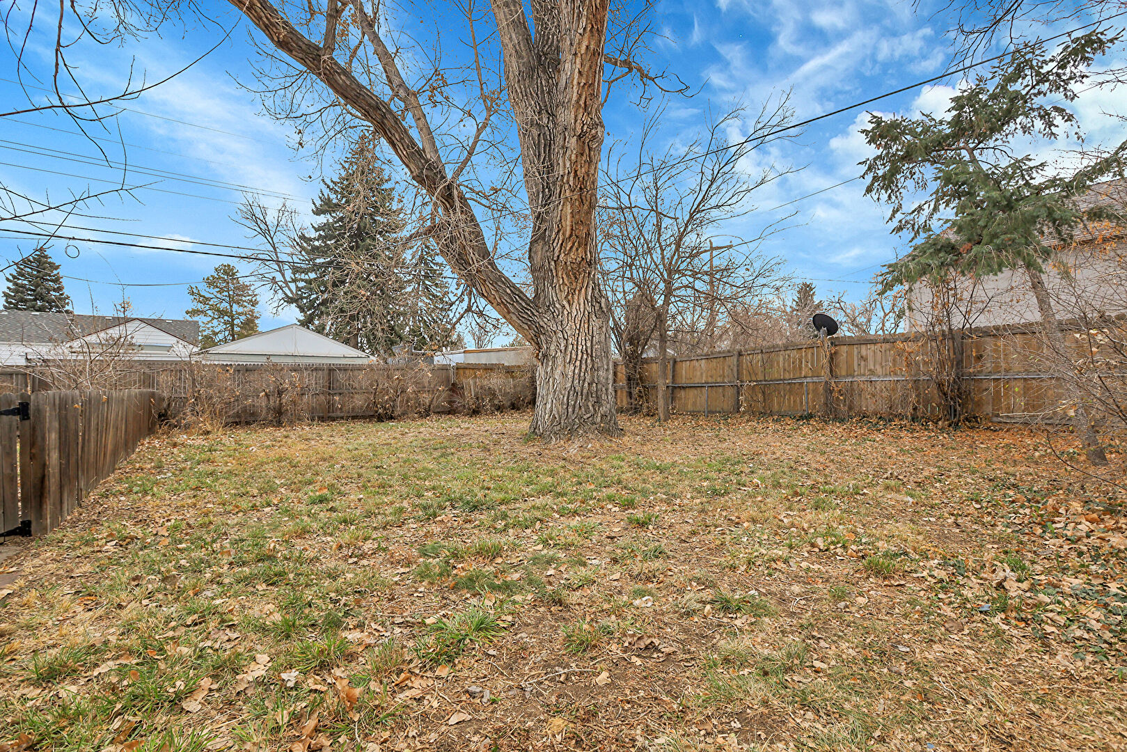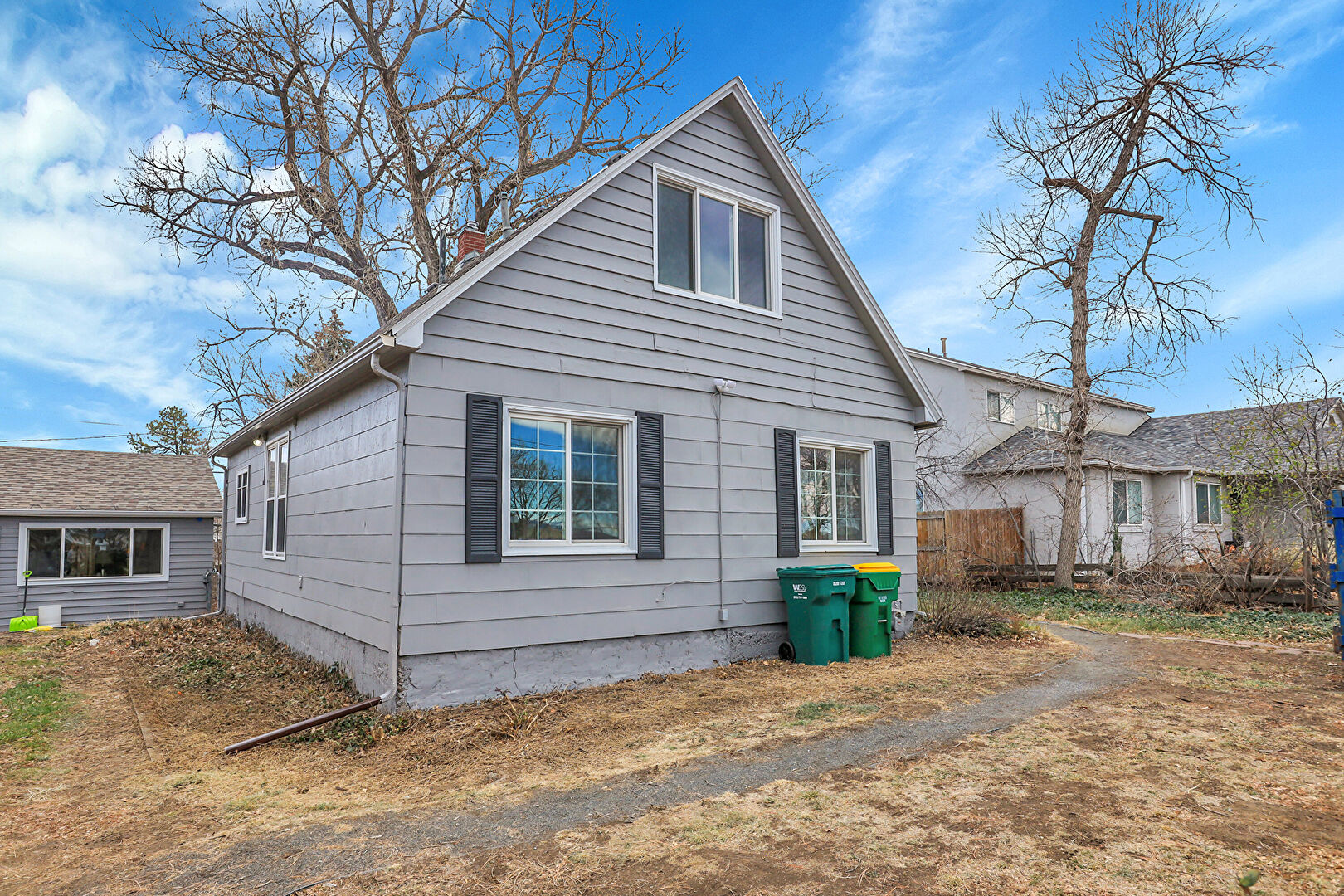 Concrete Foundation, Downspout, Electric Meter, Fence, Gutters, Horizontal Siding, Lawn, Shingle Roof, Fence, Shingle Roof