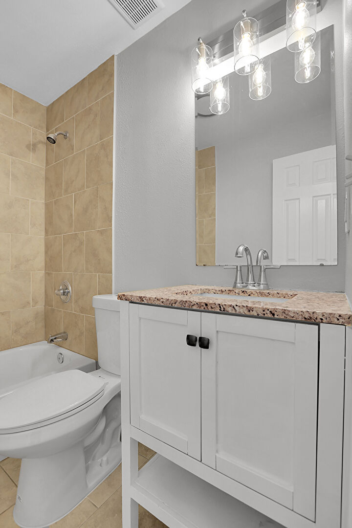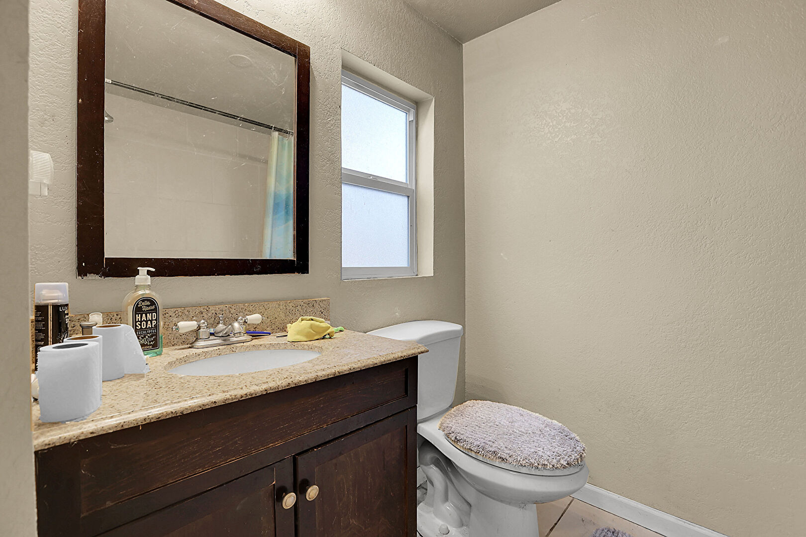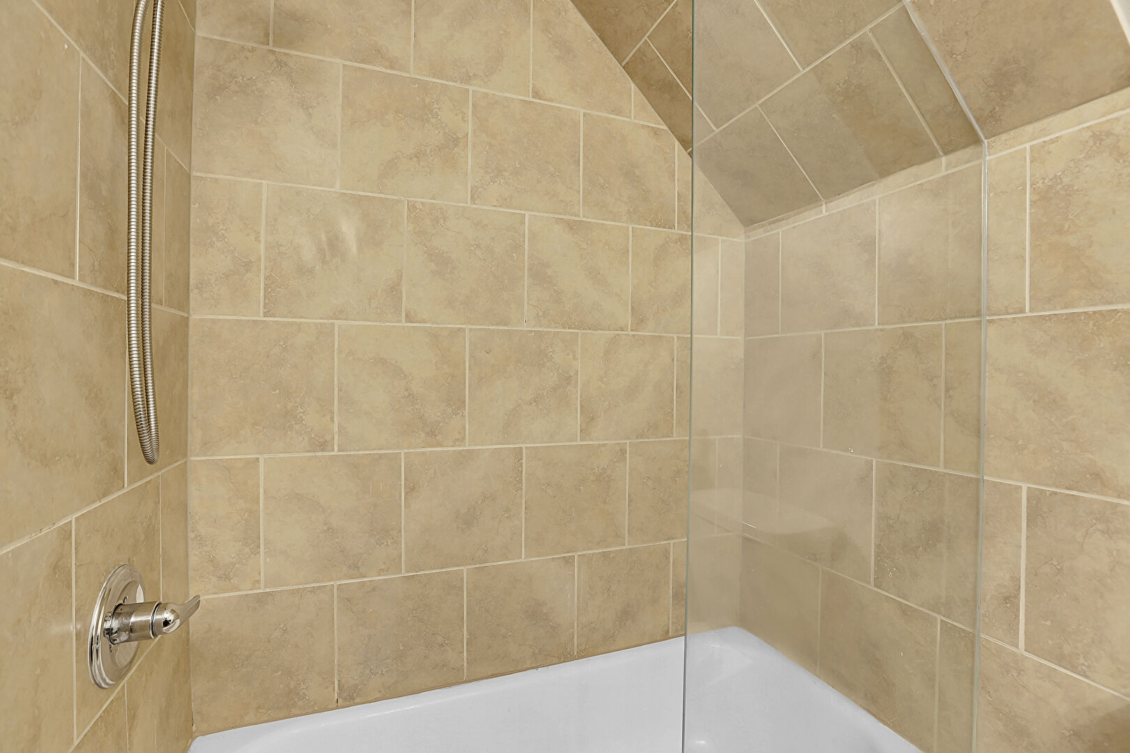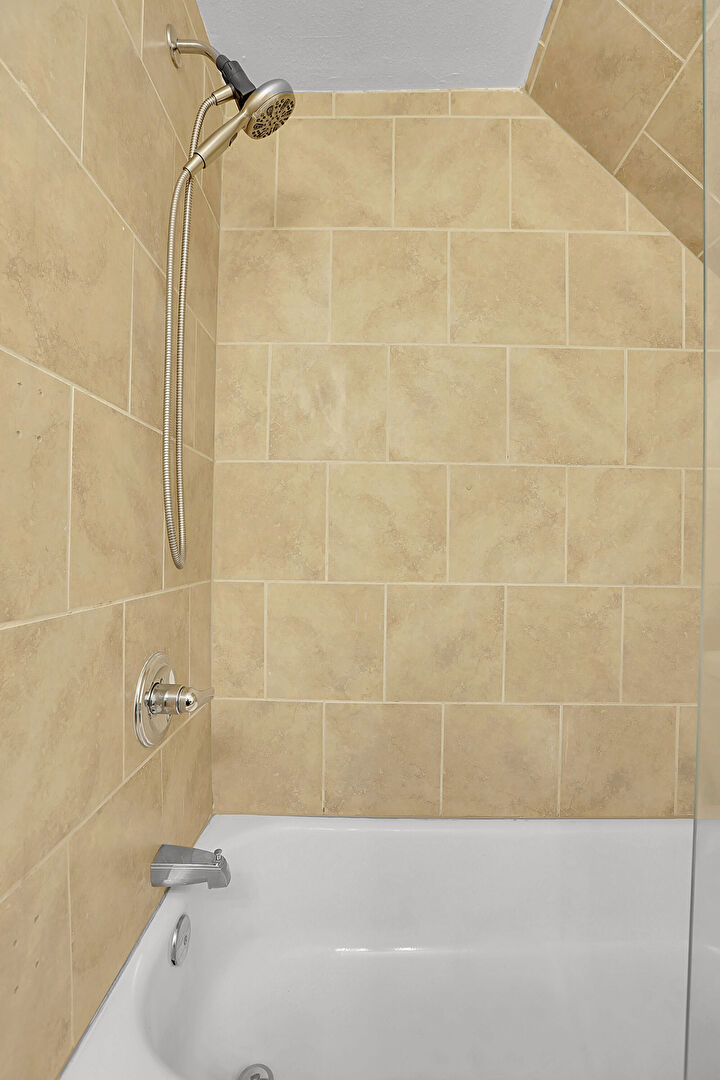 Baseboards Wall, Combined Bath Shower, Drywall, Full Bathroom, Half Bathroom, Natural Light, Textured Ceiling, Textured Wall, Tile Floor, Vanity, Vaulted Ceiling, Vent, Combined Bath Shower, Full Bathroom, Tile Floor, Vanity, Vent