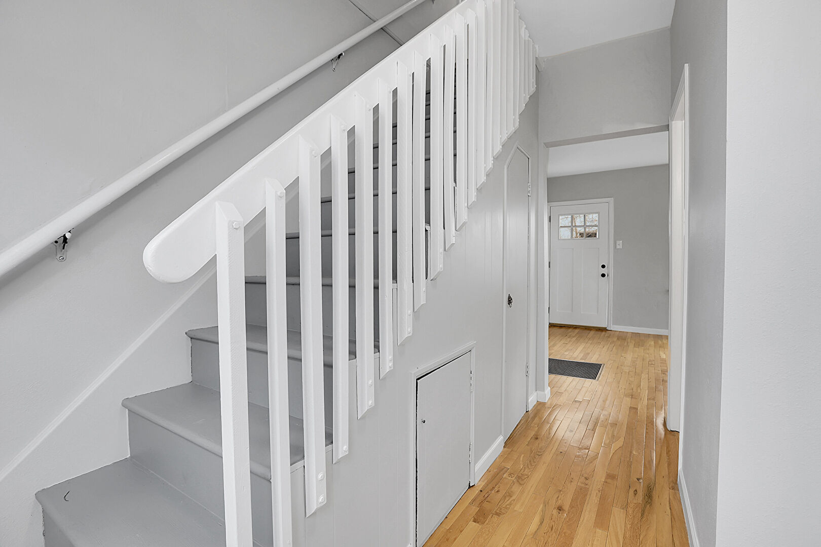 Baseboards Wall, Drywall, Stairs, Wood Finish Floor, Natural Light