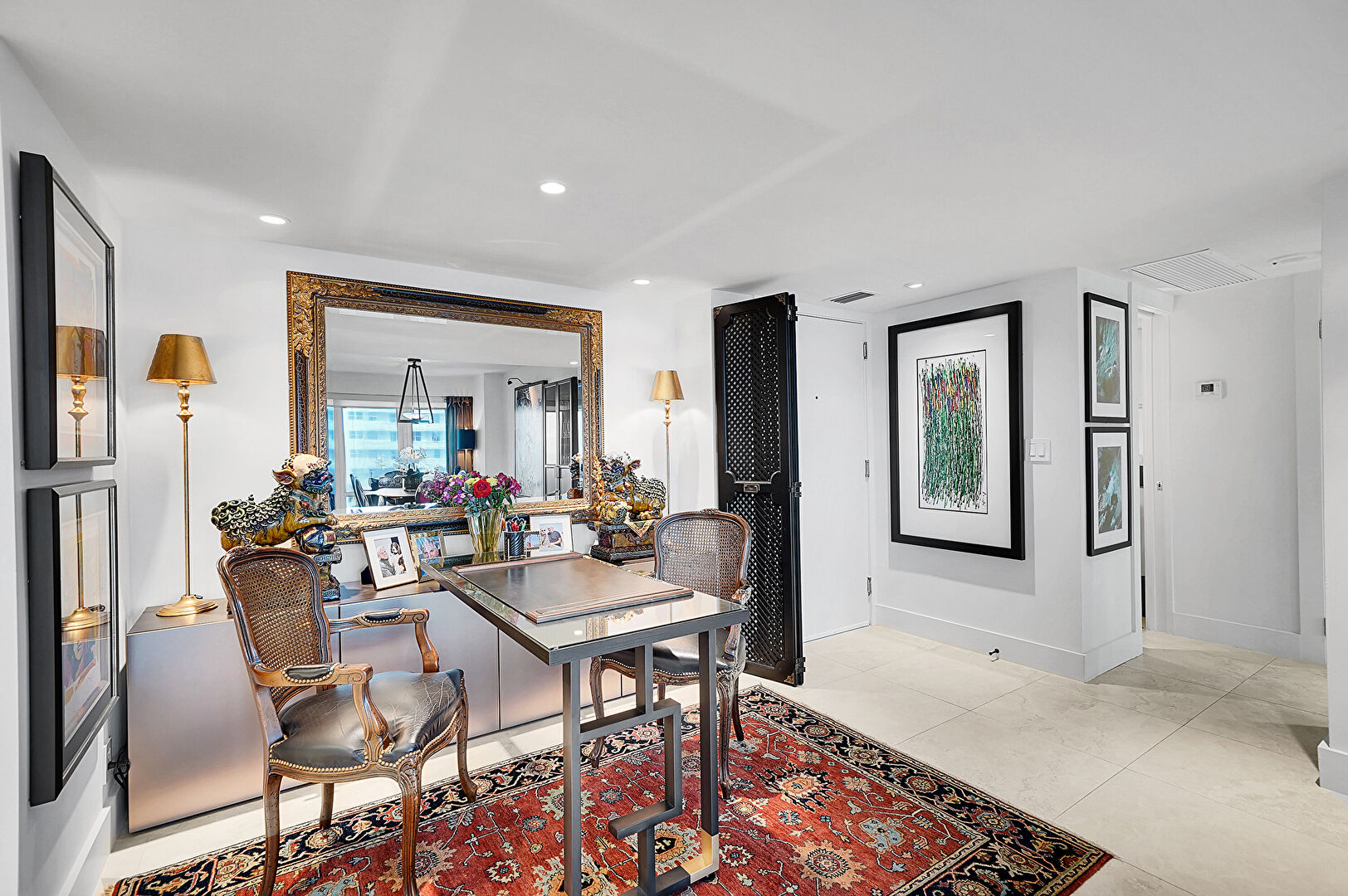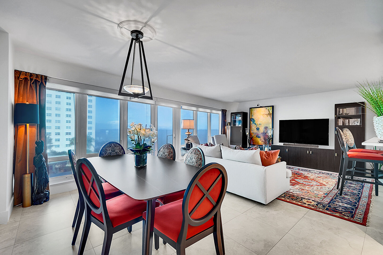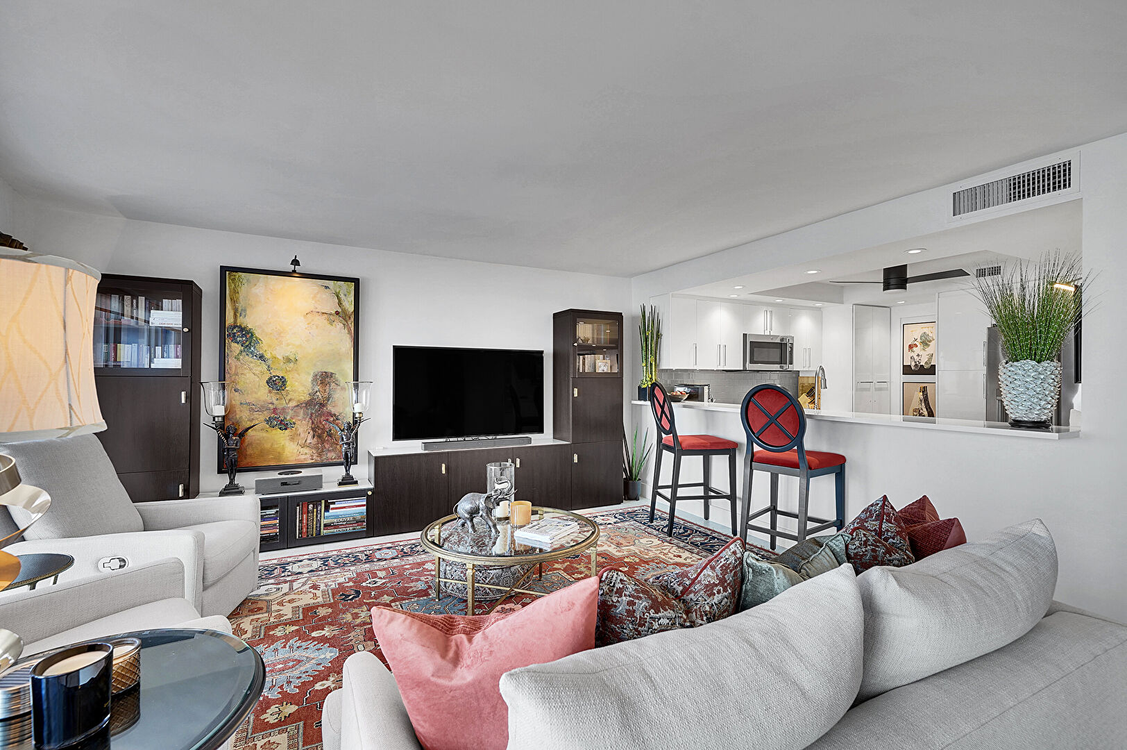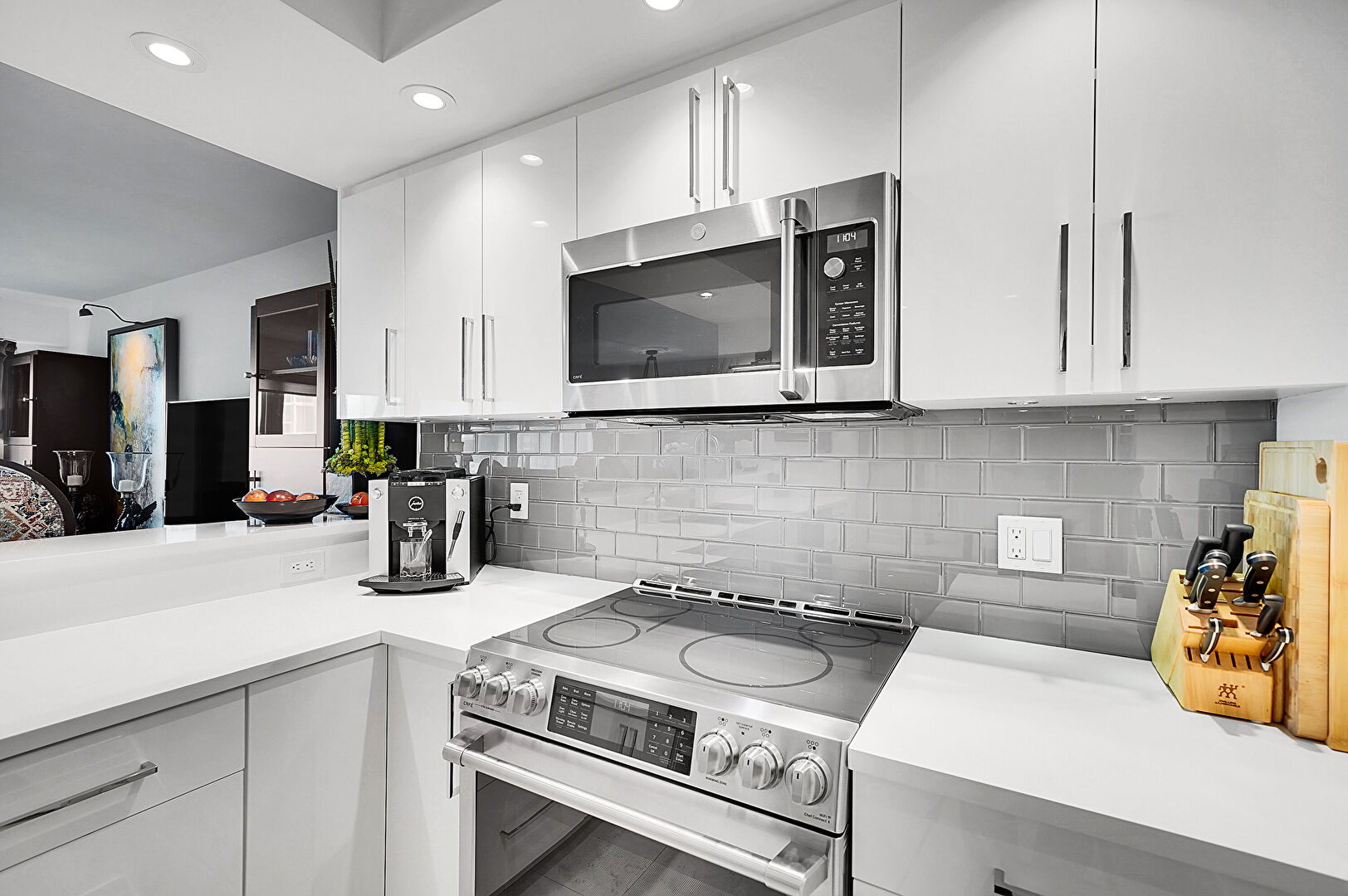 Baseboards Wall, Crown Molding, Drywall, Floor Ceiling Windows, Natural Light, Stone Countertops, Wood Finish Floor, City View