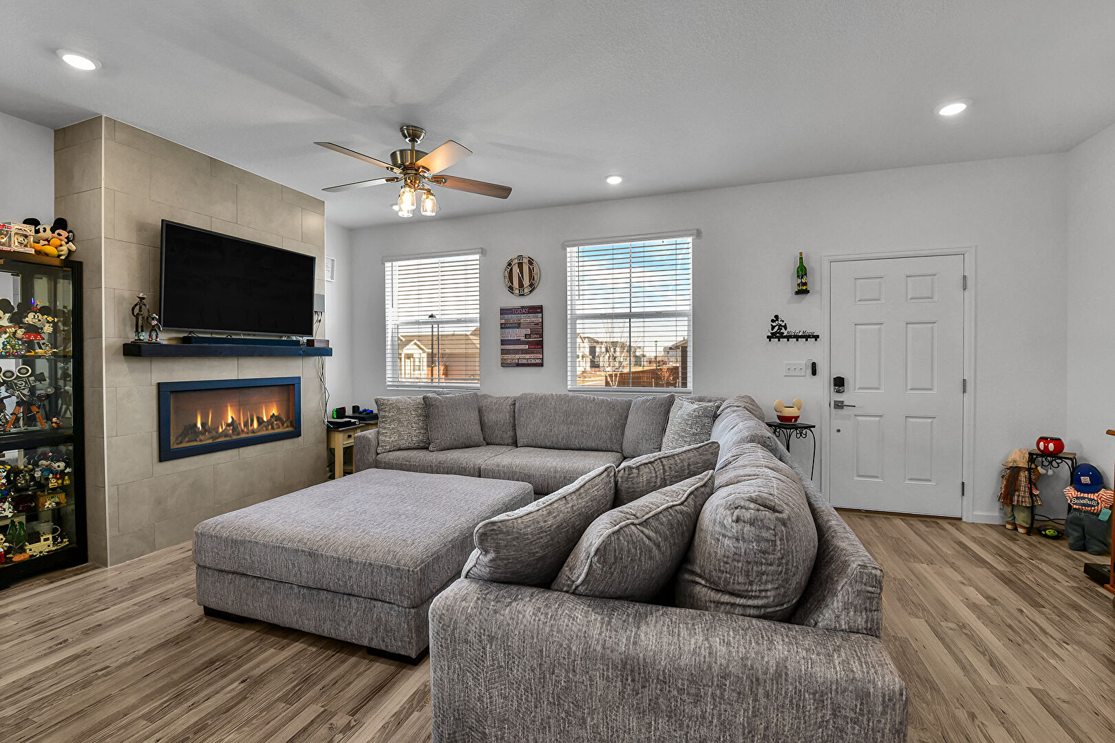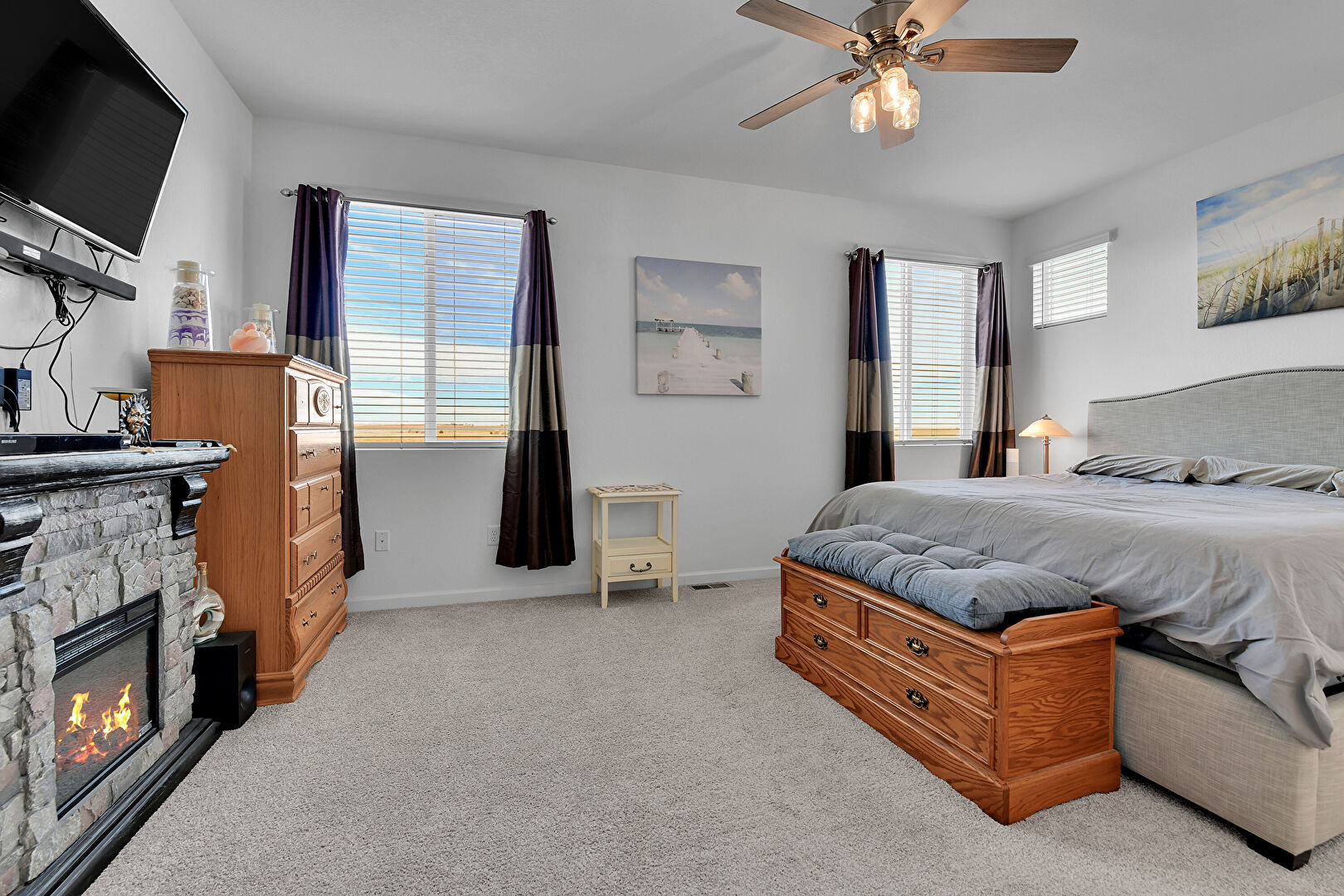 Baseboards Wall, Carpet, Ceiling Fan, Drywall, Fireplace, Natural Light, Vent, Carpet, Ceiling Fan, Drywall, Natural Light