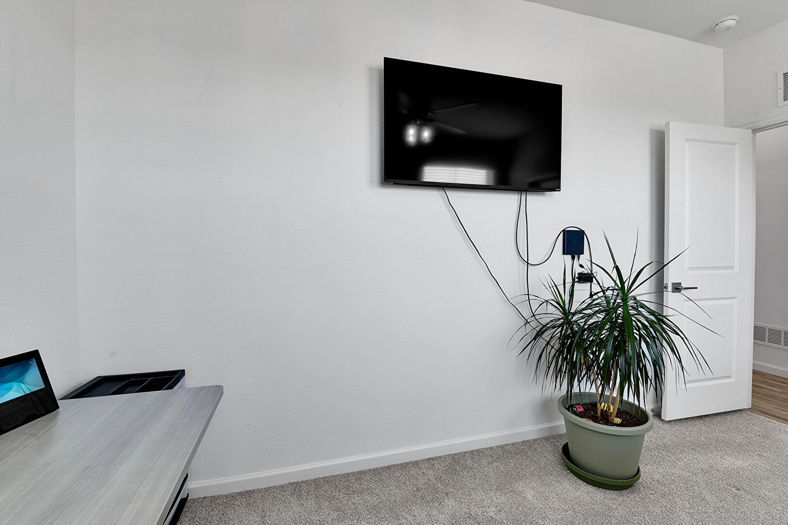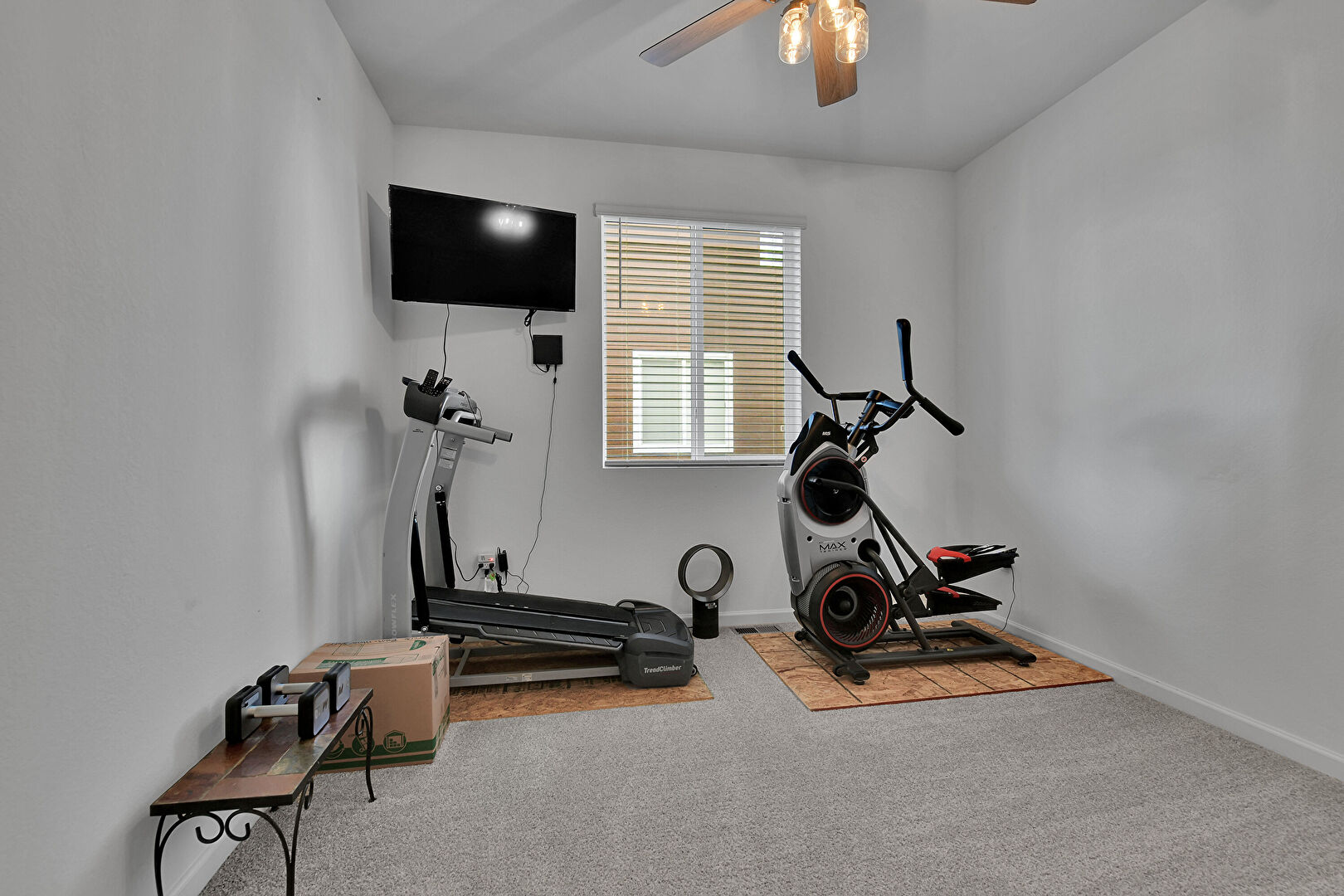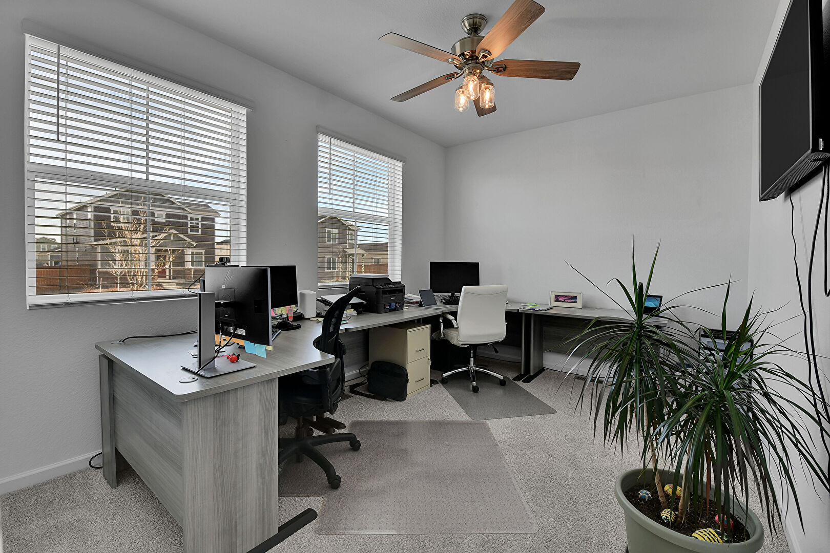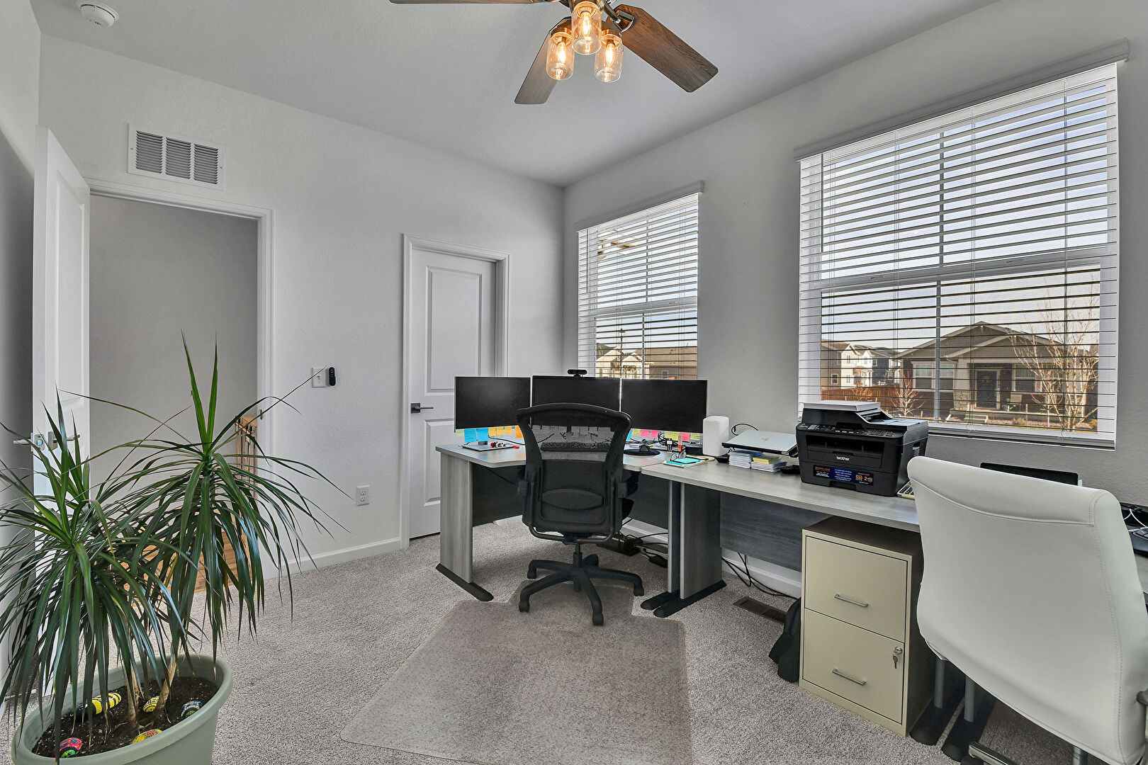 Baseboards Wall, Carpet, Ceiling Fan, Drywall, Natural Light, Office Area, Smoke Carbon Monoxide Detector, Vent, Baseboards Wall, Drywall, Vent