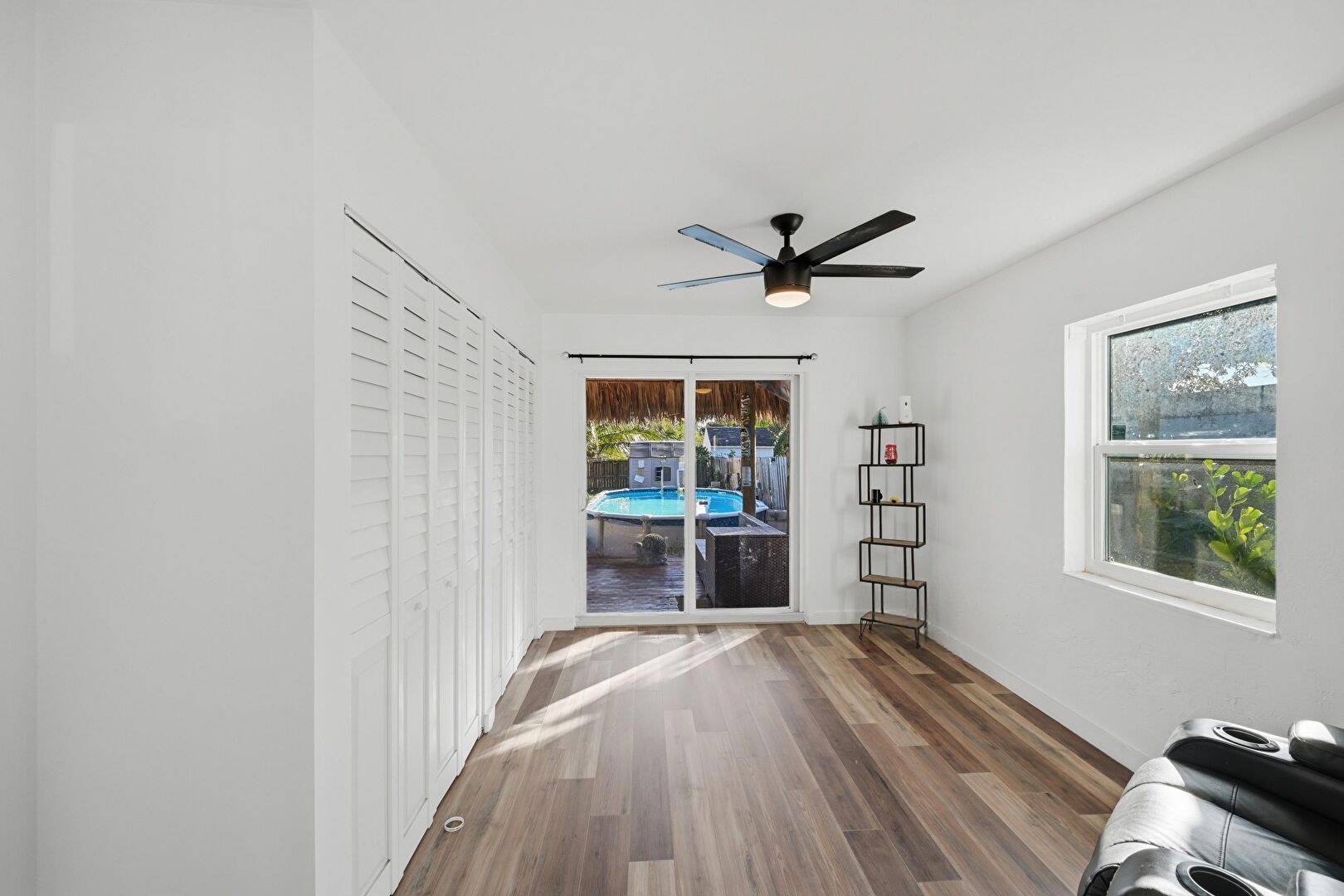Baseboards Wall, Ceiling Fan, Natural Light, Wood Finish Floor, Drywall