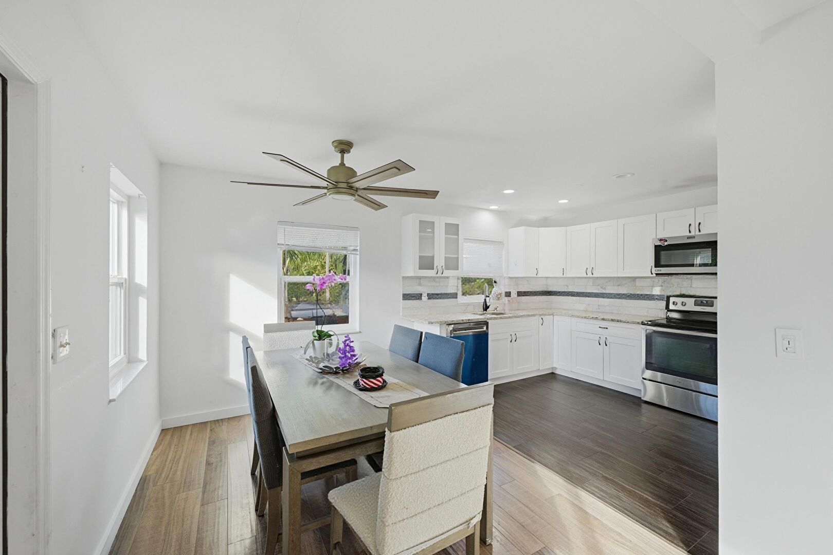 Baseboards Wall, Ceiling Fan, Drywall, Natural Light, Recessed Lighting, Wood Finish Floor
