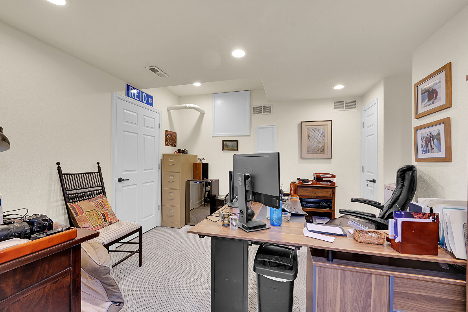Carpet, Drywall, Recessed Lighting, Vent, Office Area