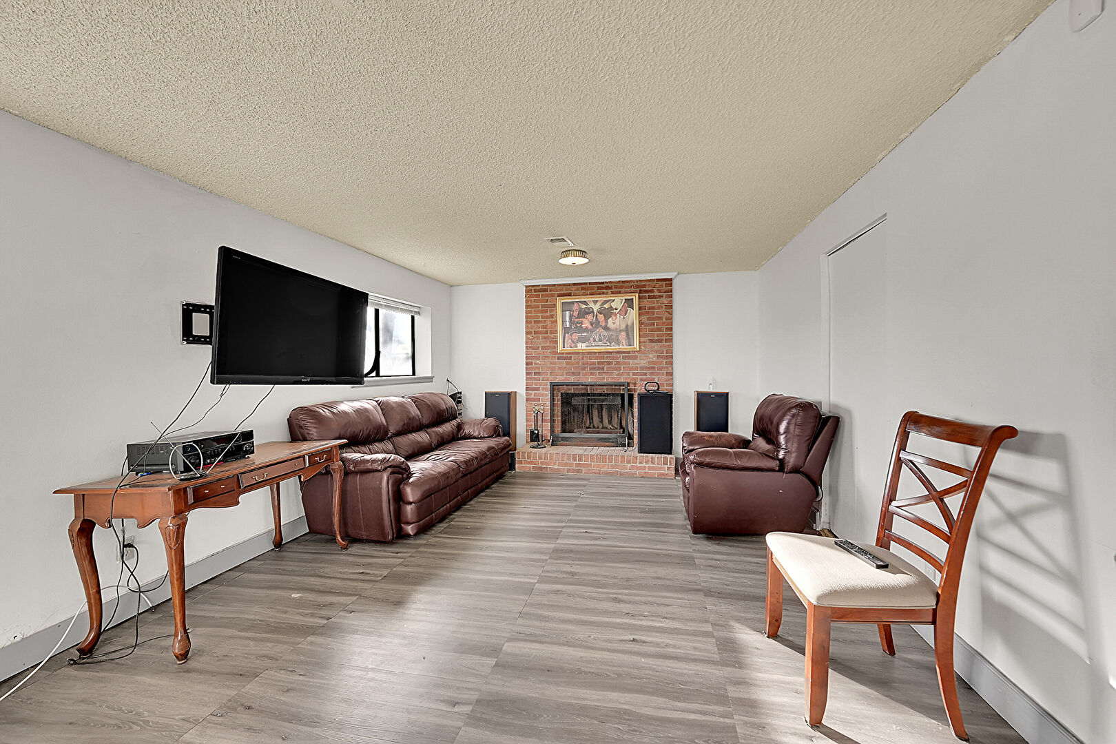 Baseboards Wall, Drywall, Fireplace, Natural Light, Stairs, Textured Ceiling, Vent, Vinyl Floor, Wood Finish Floor, Natural Light, Textured Ceiling