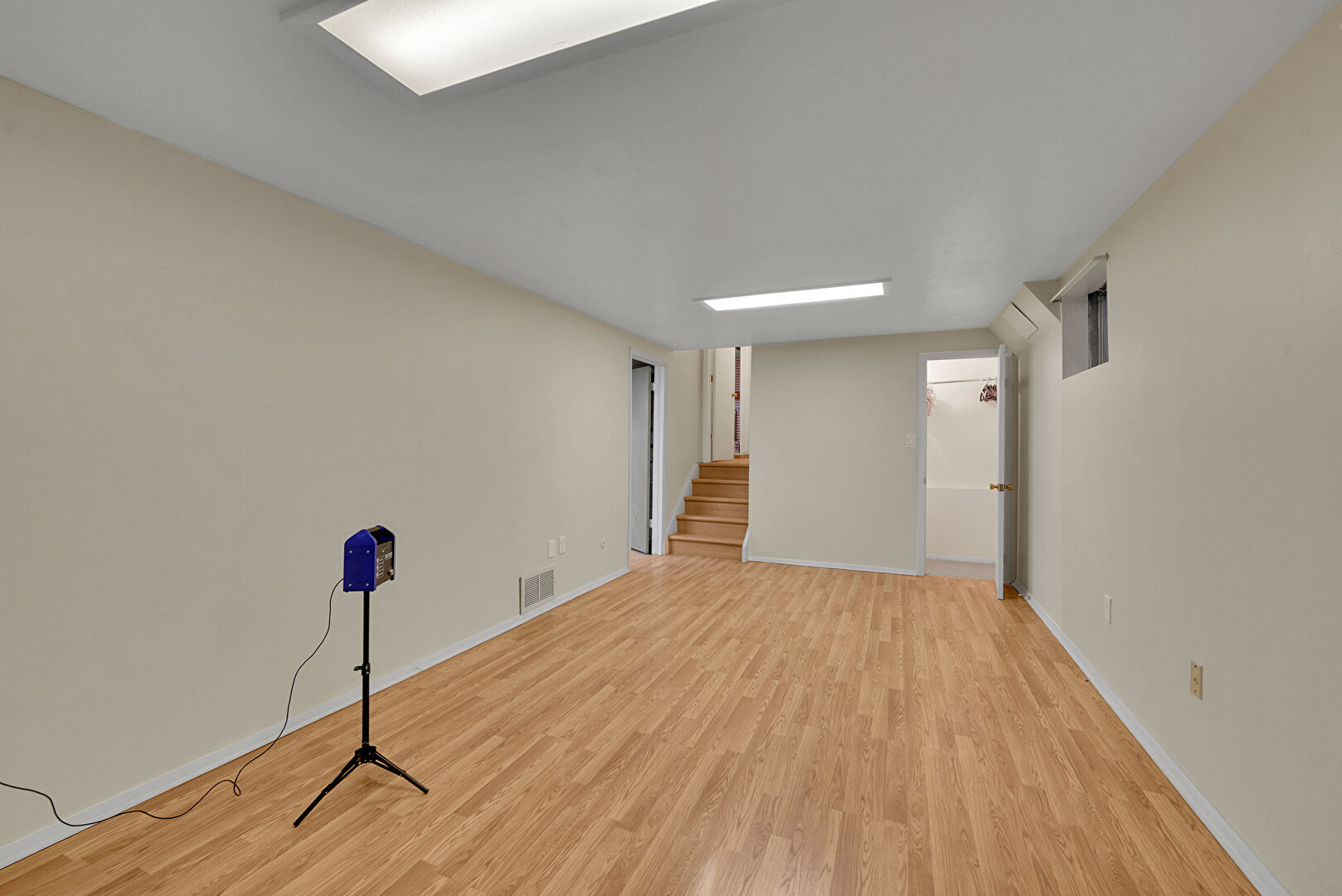 Baseboards Wall, Basement, Drywall, Laundry, Stairs, Vent, Wood Finish Floor, Concrete Foundation, Drywall, Wood Finish Floor