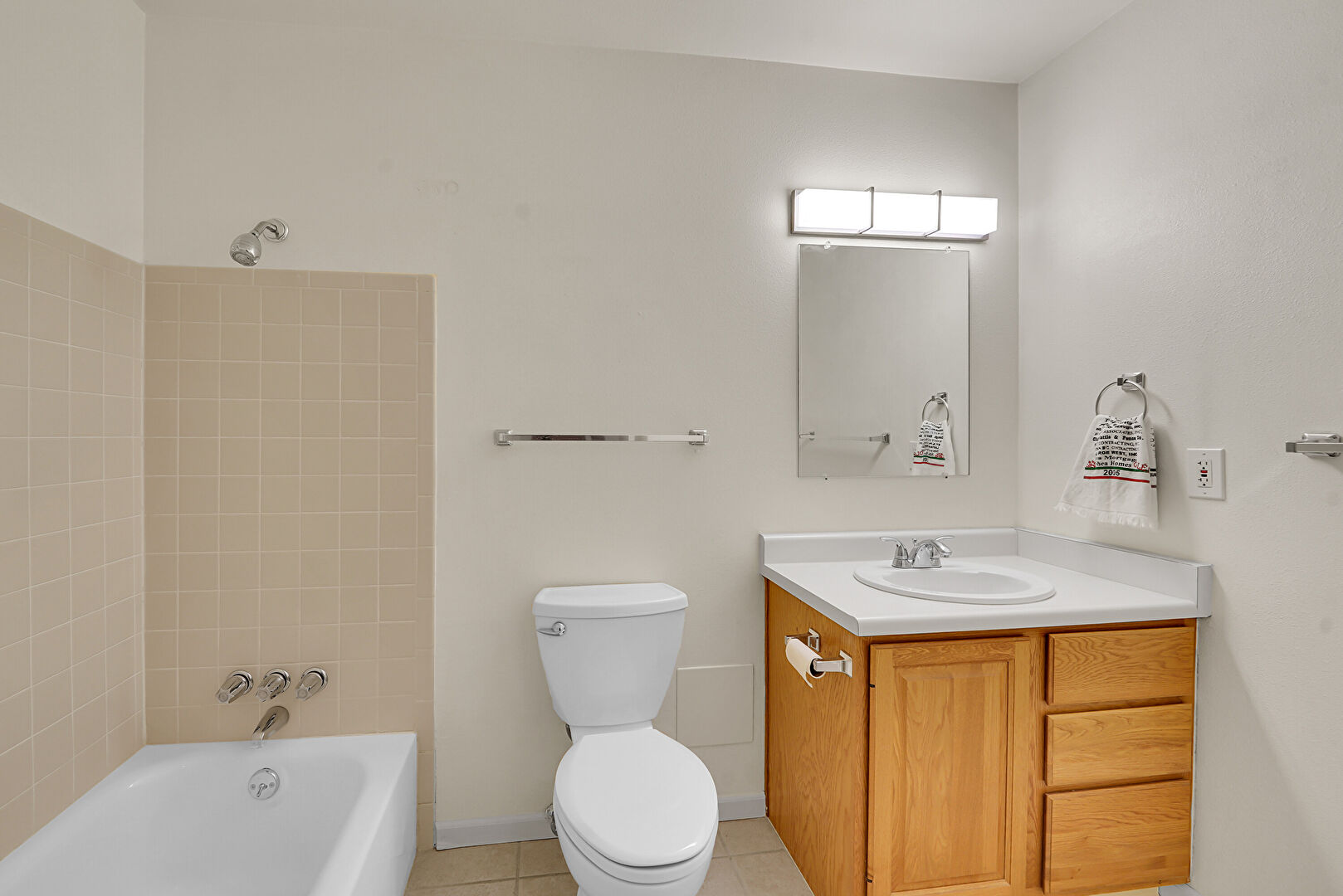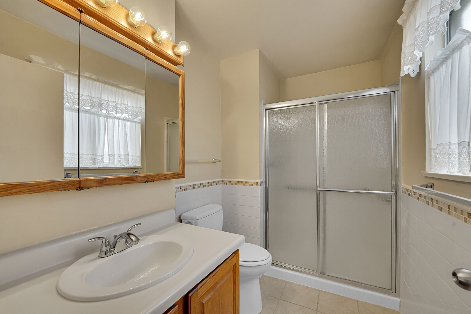 Baseboards Wall, Basement, Combined Bath Shower, Drywall, Full Bathroom, Half Bathroom, Natural Light, Textured Ceiling, Tile Floor, Tile Wall, Vanity, Wainscot Wall, Combined Bath Shower, Full Bathroom, Tile Floor