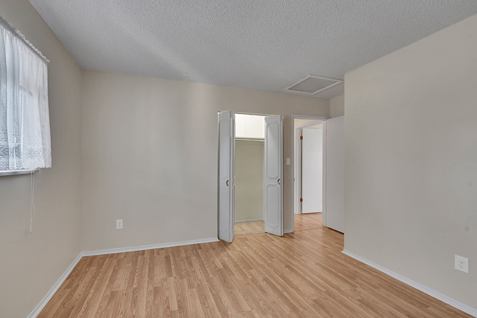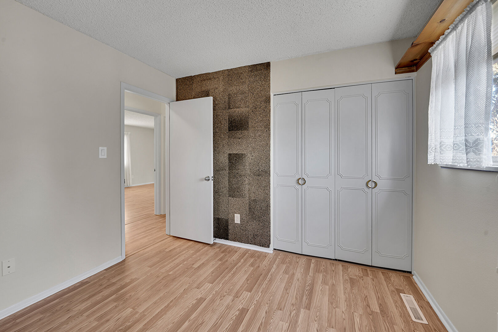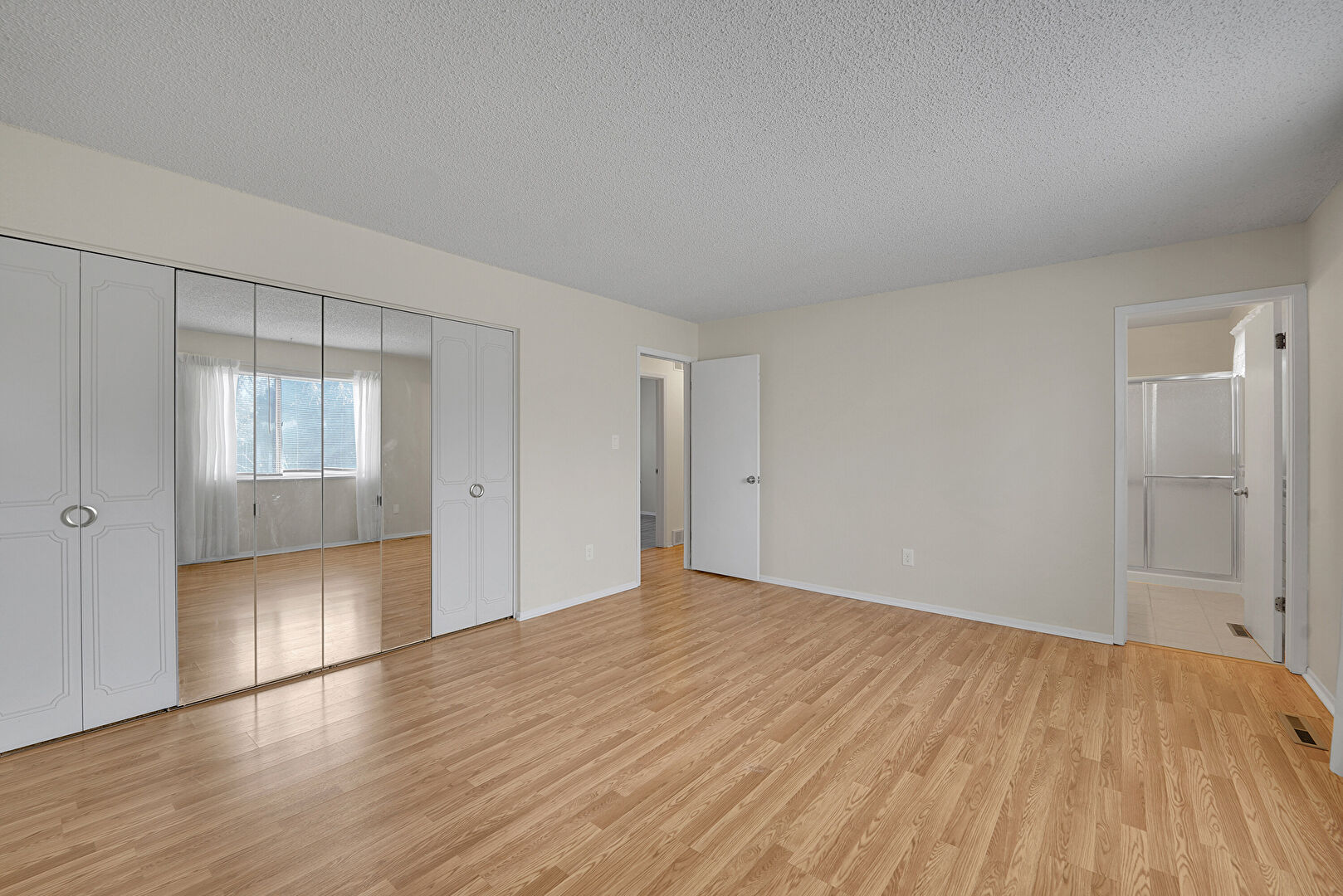Accent Wall, Baseboards Wall, Closet, Drywall, Ensuite Bathroom, Natural Light, Textured Ceiling, Vent, Wood Finish Floor, Baseboards Wall, Closet, Natural Light