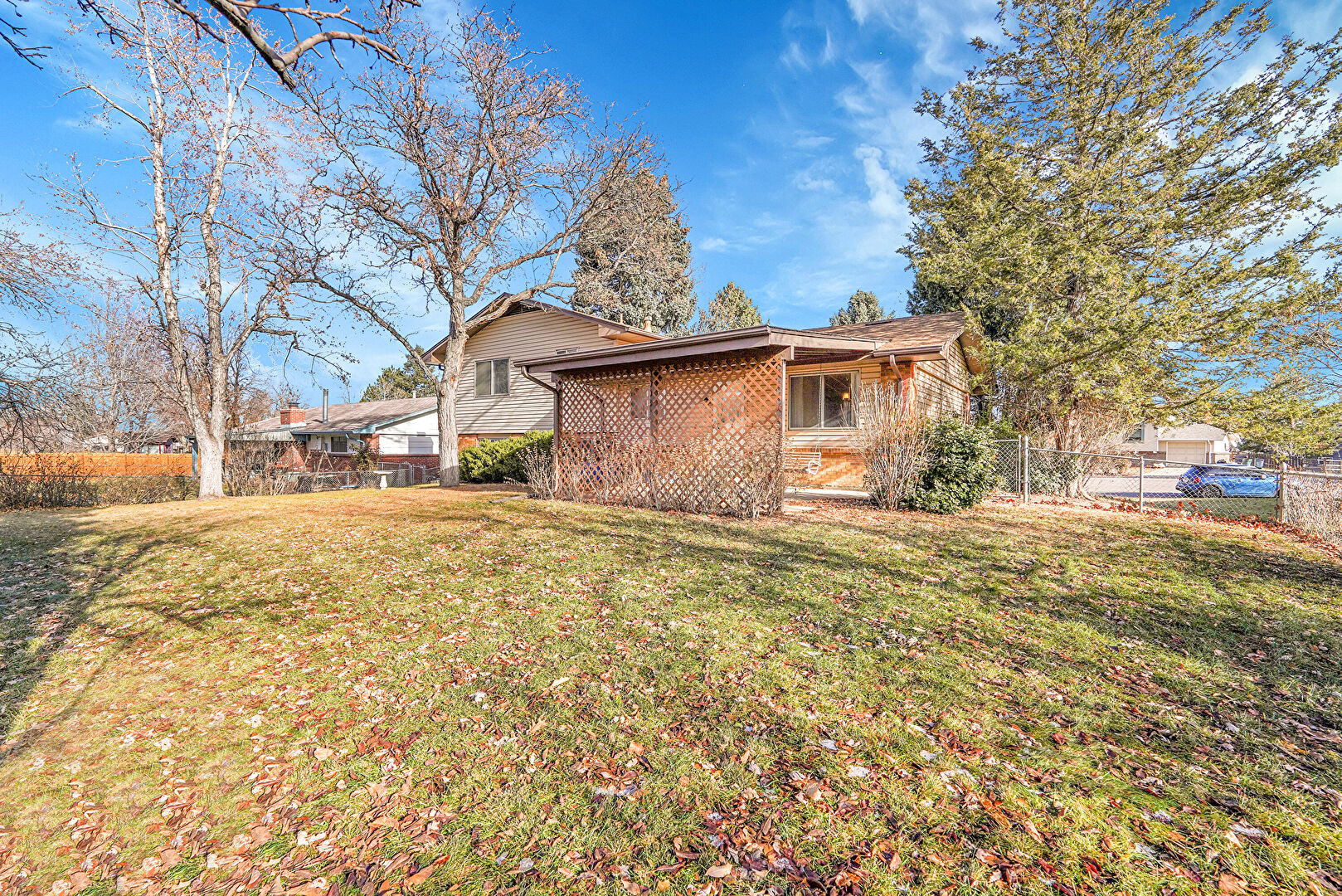 Brick Siding, Downspout, Entry Steps, Gutters, Horizontal Siding, Lawn, Fence