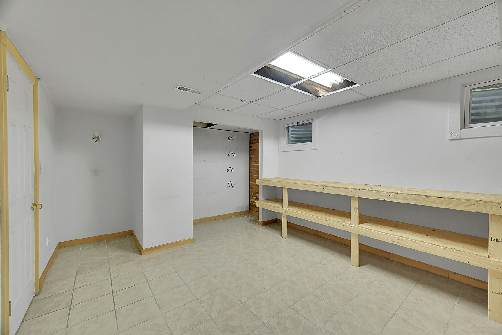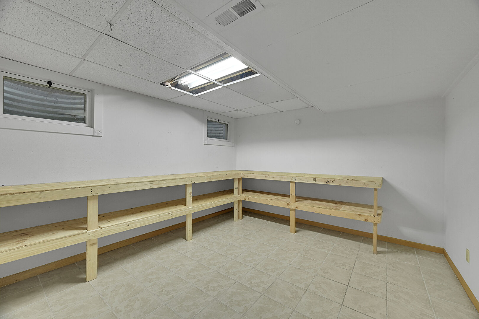 Baseboards Wall, Basement, Drop Ceiling, Drywall, Tile Floor, Vent, Vinyl Floor, Natural Light