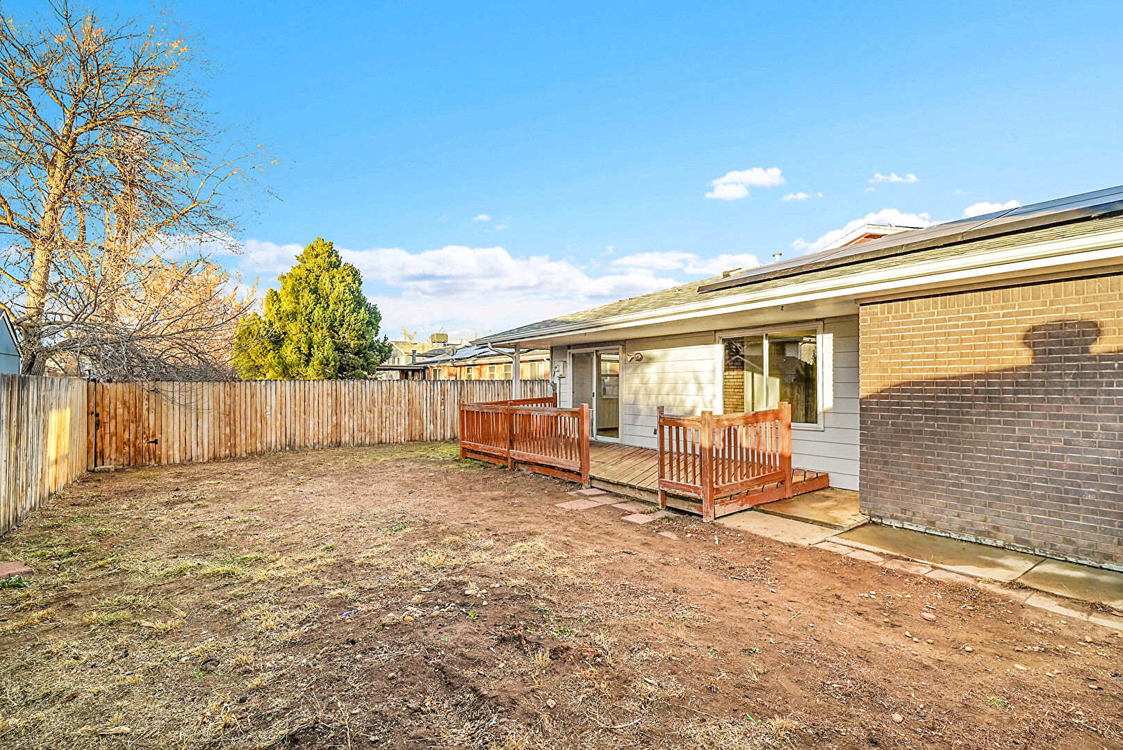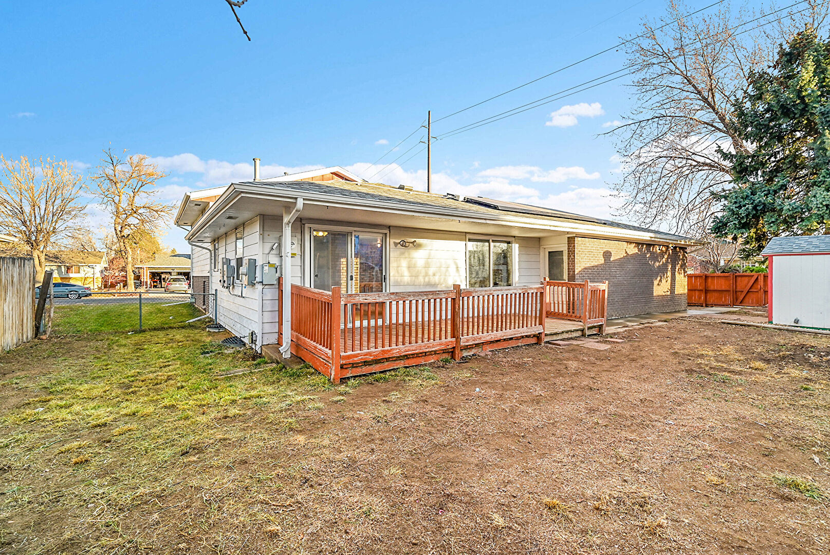 Concrete Foundation, Deck, Fence, Gutters, Horizontal Siding, Lawn, Outdoor Structure, Shed, Solar Panels, Downspout