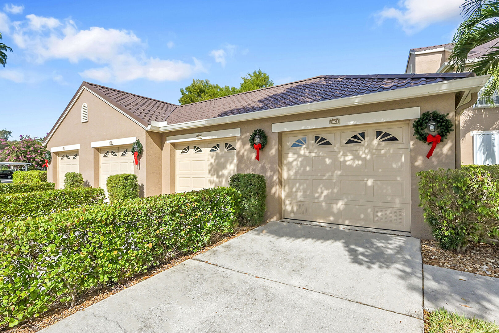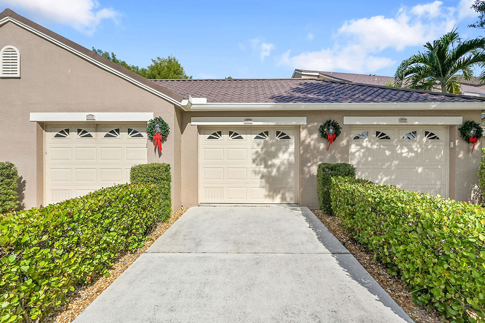 Downspout, Driveway, Stucco Siding, Tile Roof, Gutters