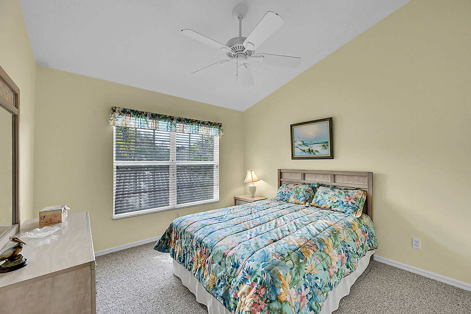 Baseboards Wall, Ceiling Fan, Drywall, Natural Light, Vaulted Ceiling, Carpet